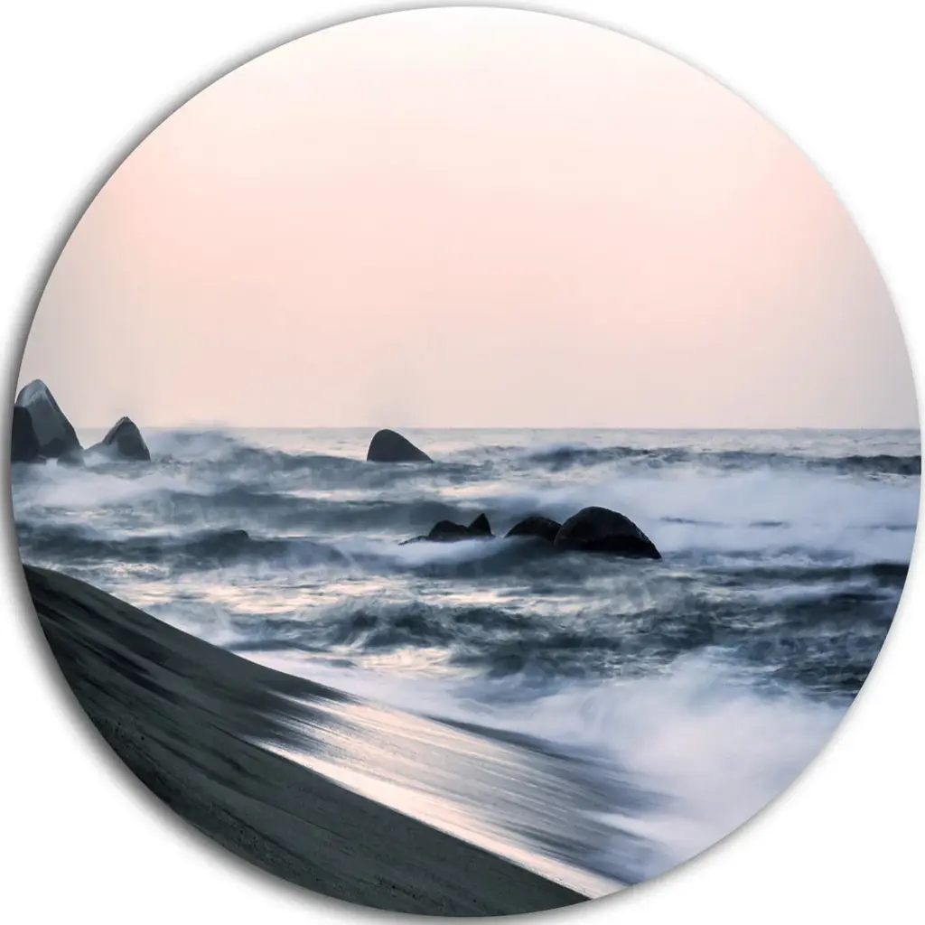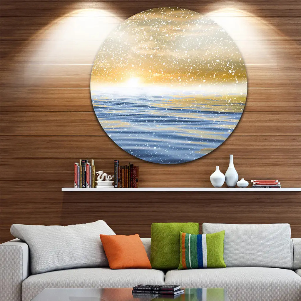 Sunset Over The Sea With Snow, Skyscape Photo Disc Metal Artwork, 23"