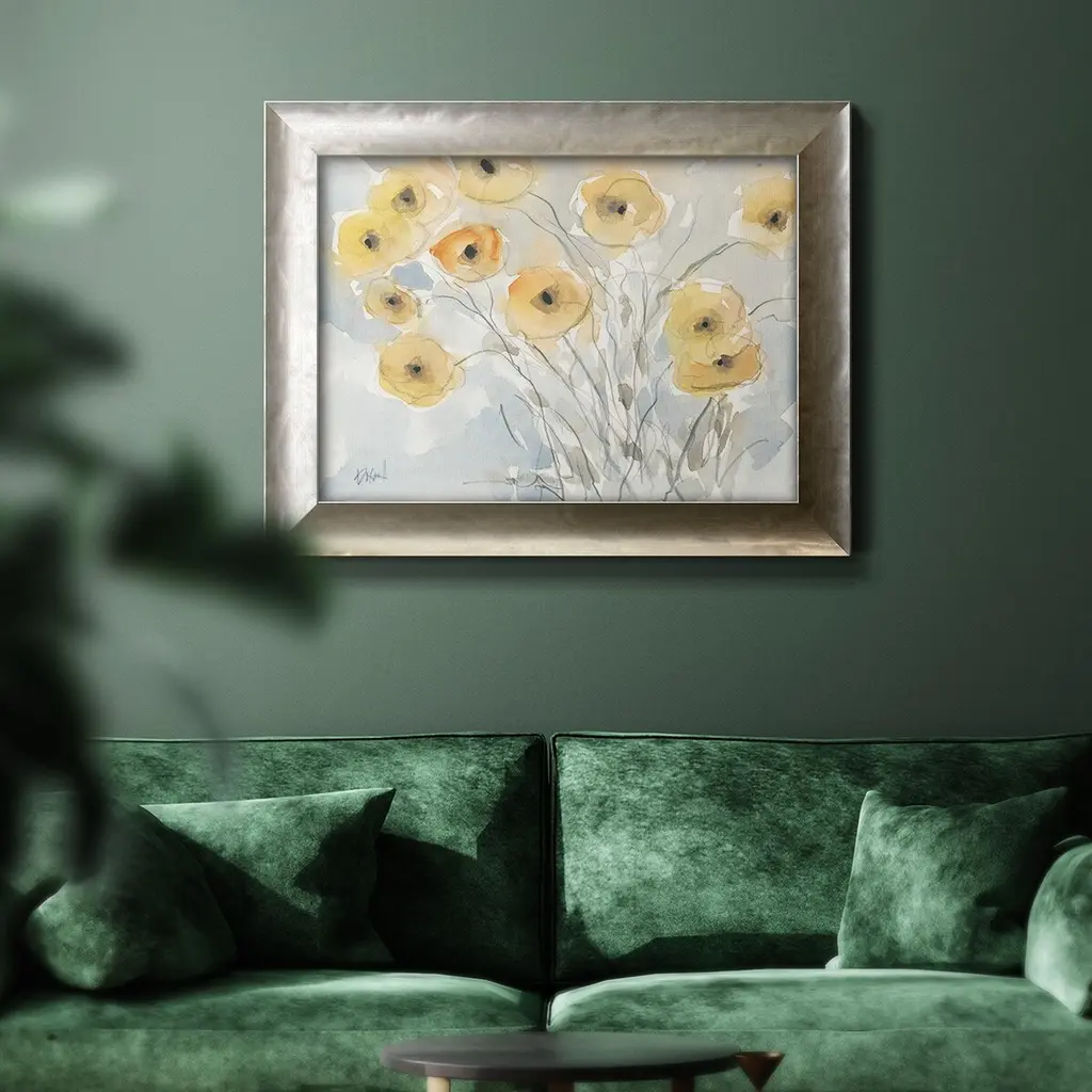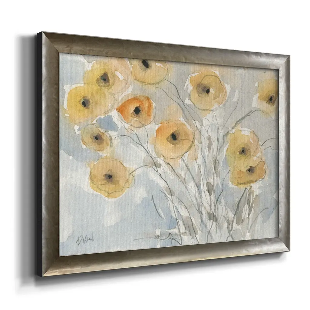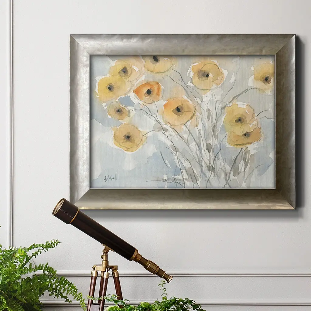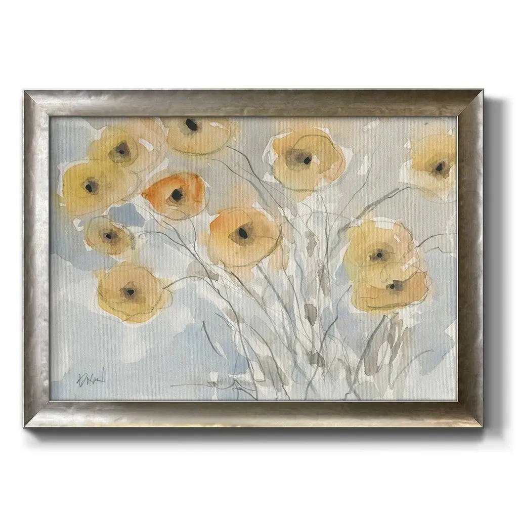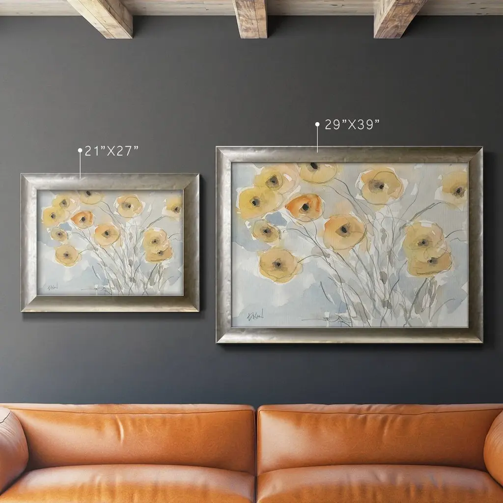 Sunset Poppies II Premium Framed Canvas- Ready to Hang A Premium Framed Canvas created to last. Framed in distressed wood and available in an array of sizes and colors Featuring a beveled a solid wood stretcher bar, each piece comes ready to hand 3 SIZES AVAILABLE 16''X20'' - Overall Size 18'X27'' - Overall Size 24''x36'' - Overall Size Each piece is made to order. Each piece comes with hanging hardware. Made in the USA Ready to Hang Giclee Paper Print Acrylic Glass Beveled Matt Board