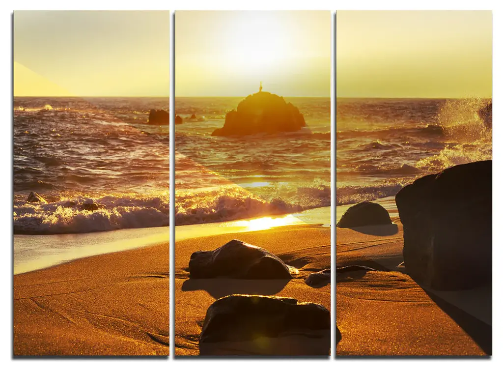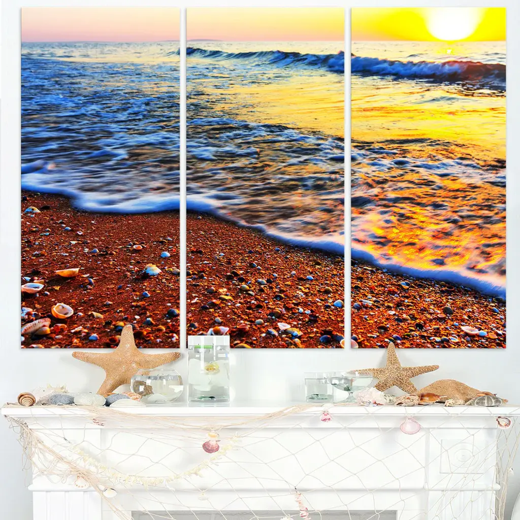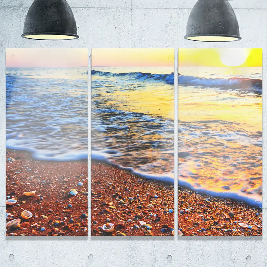 "Sunset Reflecting In Blue Waves" Metal Wall Art, 3 Panels, 36"x28"