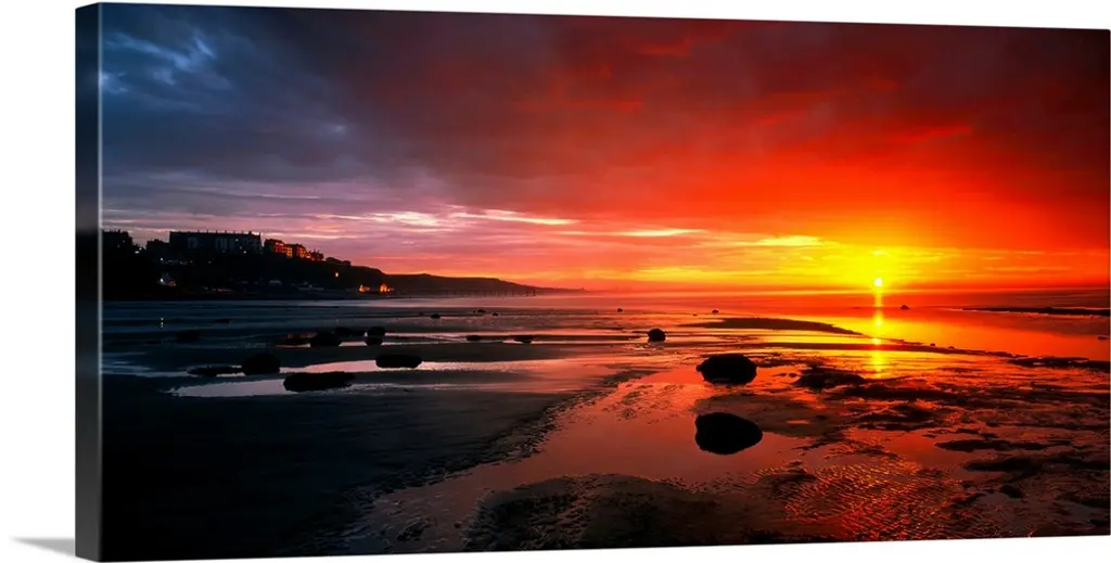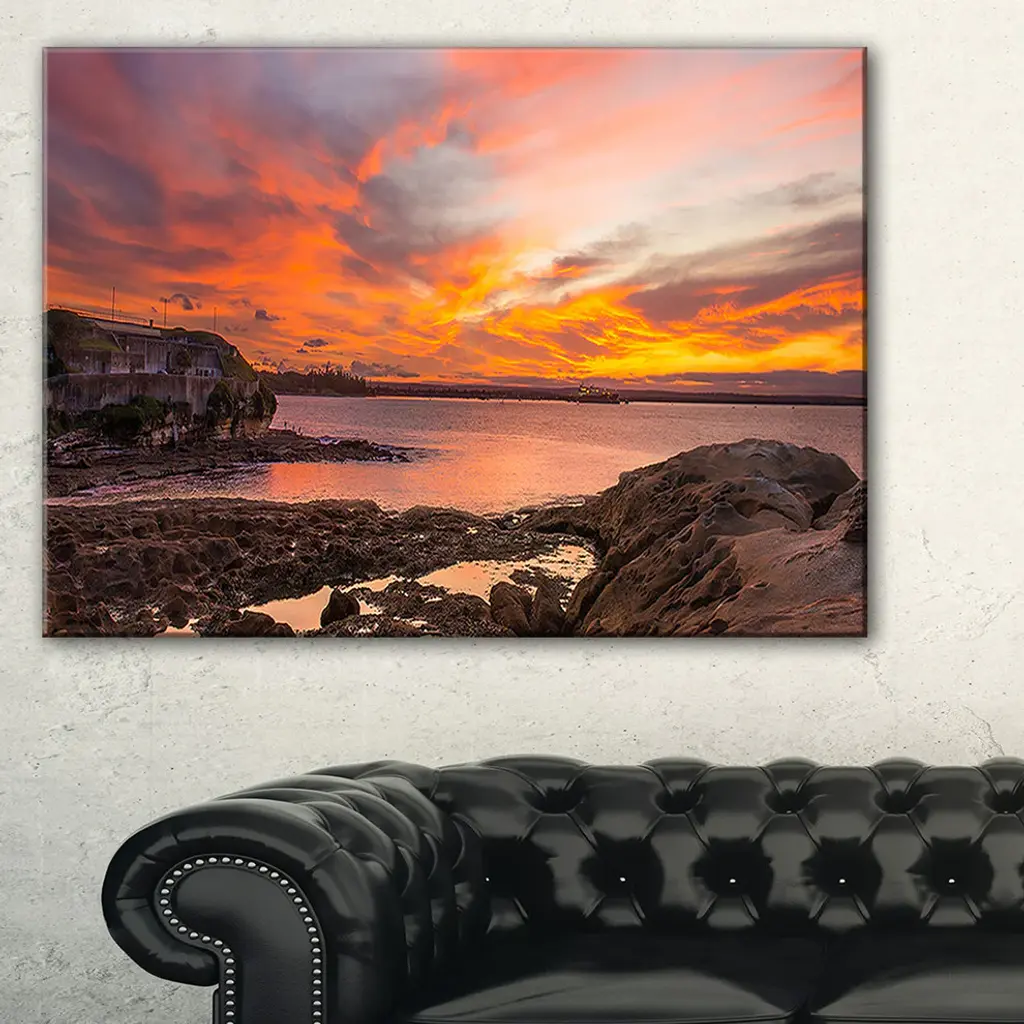 "Sunset Sky Panoramic Sydney View" Seashore Canvas Print, 40"x20"