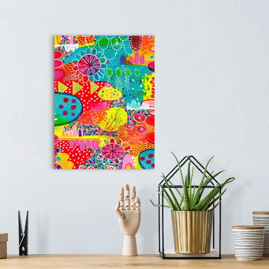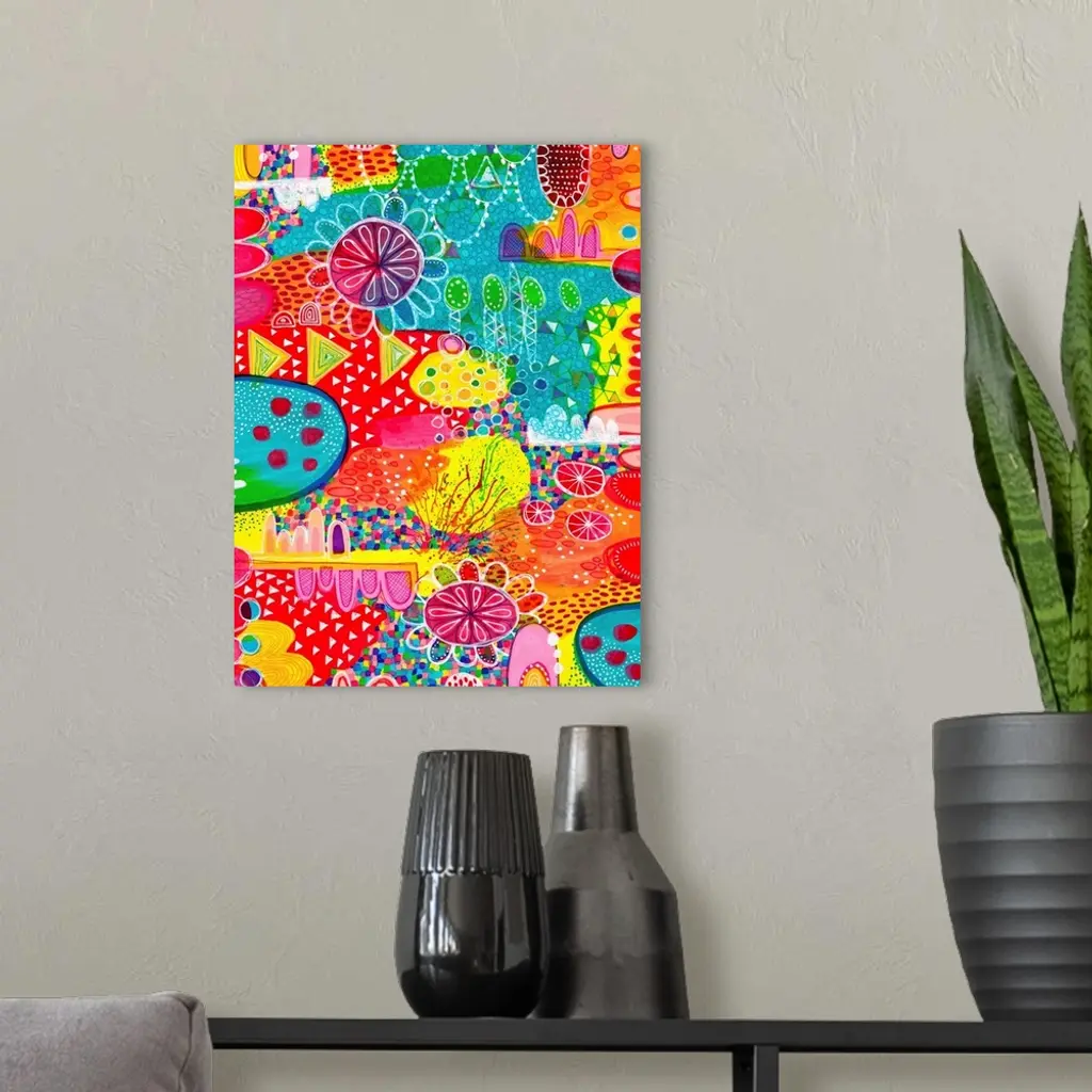 Contemporary abstract artwork using bright vibrant colors and organic shapes.