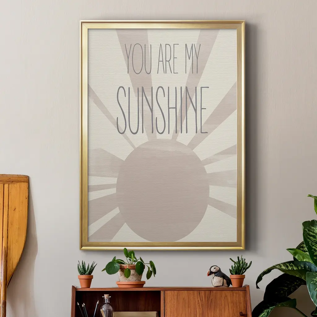 Sunshine Premium Framed Print - Ready to Hang A Premium Framed Print created to last. Framed in distressed wood and available in an array of sizes and colors Featuring a beveled a solid wood stretcher bar, each piece comes ready to hand 4 SIZES AVAILABLE 30.5''X42.5'' - Overall Size 26.5'X36.5'' - Overall Size 22.5''x30.5'' - Overall Size 18.5''x24.5'' - Overall Size Each piece is made to order. Each piece comes with hanging hardware. Made in the USA Ready to Hang