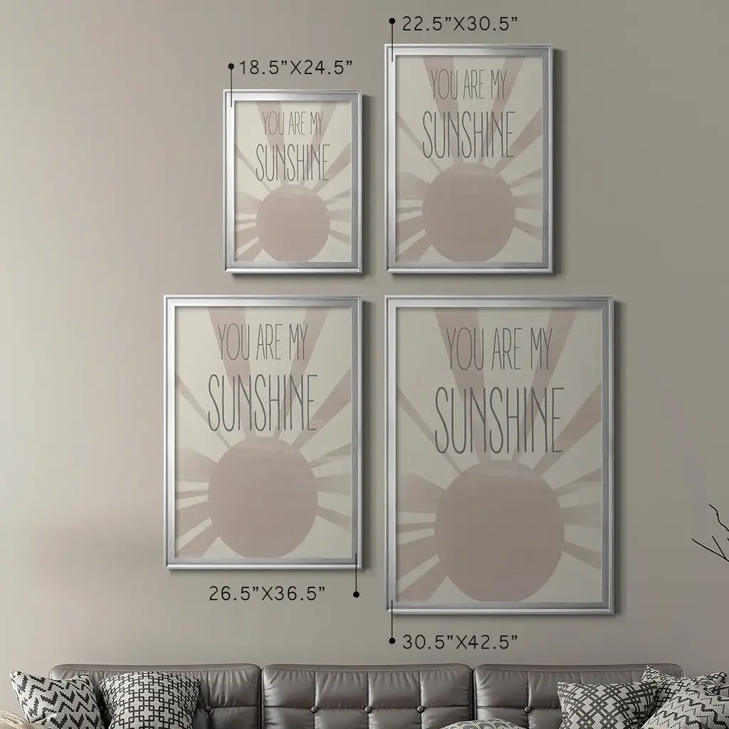 Sunshine Premium Framed Print - Ready to Hang A Premium Framed Print created to last. Framed in distressed wood and available in an array of sizes and colors Featuring a beveled a solid wood stretcher bar, each piece comes ready to hand 4 SIZES AVAILABLE 30.5''X42.5'' - Overall Size 26.5'X36.5'' - Overall Size 22.5''x30.5'' - Overall Size 18.5''x24.5'' - Overall Size Each piece is made to order. Each piece comes with hanging hardware. Made in the USA Ready to Hang