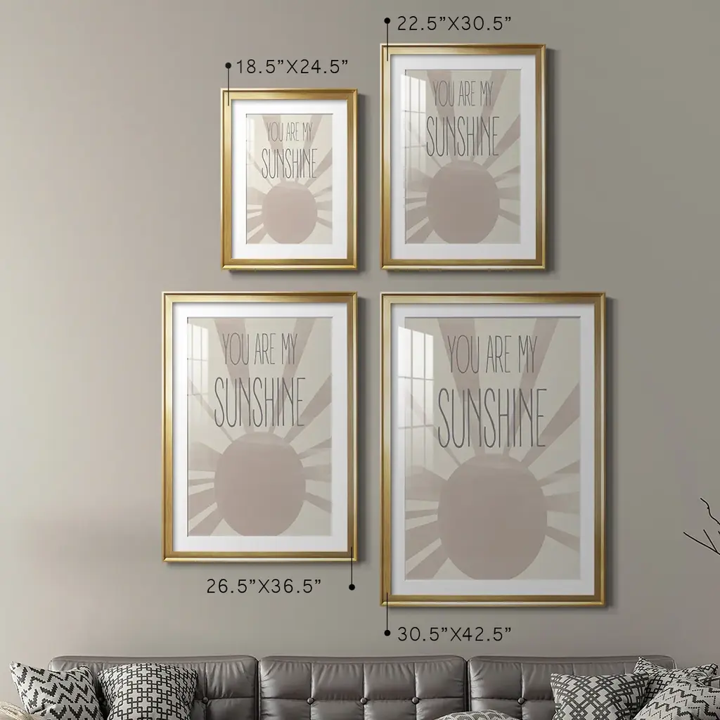 Sunshine Premium Framed Print - Ready to Hang A Premium Framed Print created to last. Framed in distressed wood and available in an array of sizes and colors Featuring a beveled a solid wood stretcher bar, each piece comes ready to hand 4 SIZES AVAILABLE 30.5''X42.5'' - Overall Size 26.5'X36.5'' - Overall Size 22.5''x30.5'' - Overall Size 18.5''x24.5'' - Overall Size Each piece is made to order. Each piece comes with hanging hardware. Made in the USA Ready to Hang Giclee Paper Print Acrylic Glass Beveled Matt Board