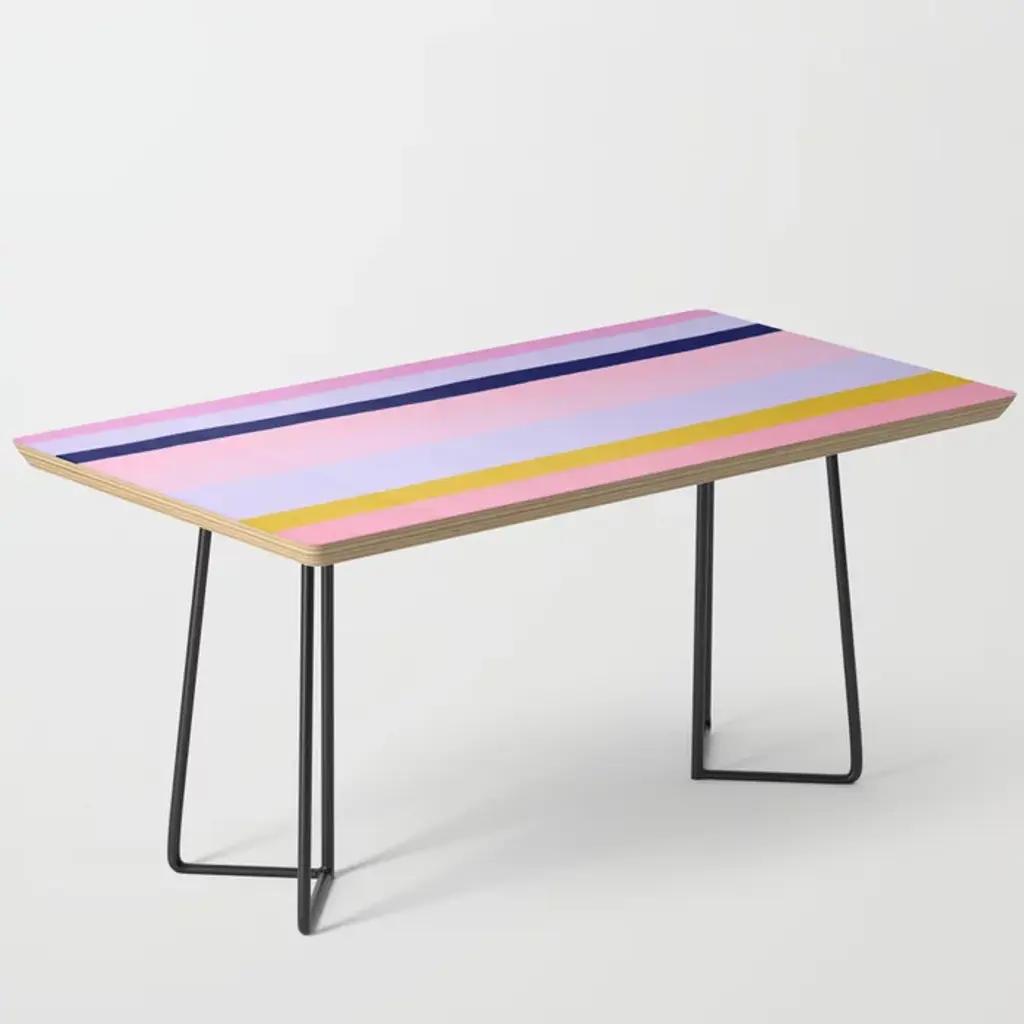 35.75" x 17.75" x 17" (H)Baltic birch table top with beveled edgeHigh quality print with satin finishSteel legs available in black or goldAssembly requiredEvery order is made just for youSHIPPING: Items are made to order and typically ship within 3-4 business days. Click here for more information about delivery options.Furniture sales are final. Click here for more information on returns.