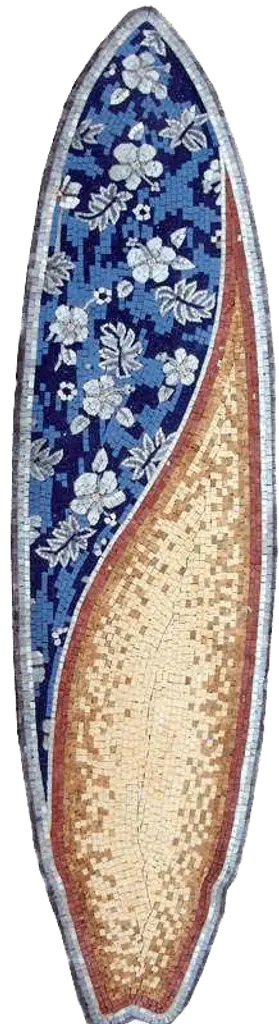 Introducing our stunning Surf Board Mosaic Artwork, the perfect addition for those who love the thrill of extreme sports or seek a unique decorative piece for their swimming pool or spa area. This exquisite handmade mosaic captures the essence of surfing culture, showcasing a beautifully designed surfboard adorned with a vibrant mix of colors that will bring life to any space.Immerse yourself in the ocean vibes with the vivid shades of blue that reflect the tranquil waters, inviting you to embrace the serenity of the sea. Complementing this aquatic hue, the rich browns evoke the warmth of sandy beaches, reminding us of sun-soaked days and the idyllic moments spent by the shore. The harmonious blend of these colors creates a stunning visual focal point that epitomizes relaxation and adventure.Each piece of this exquisite artwork is meticulously crafted using 100% all-natural marble tiles, ensuring not only its vibrant appearance but also its durability. The use of natural materials means that every mosaic is unique, with individual character and charm that can’t be replicated. This commitment to quality craftsmanship makes our Surf Board Mosaic Artwork a timeless addition to your home or outdoor living space.Whether you are a surfer at heart, an avid fan of water sports, or simply looking to enhance the ambiance of your aquatic areas, this mosaic is designed to inspire and captivate. It serves as a perfect decorative accent for poolside gatherings, spa retreats, or even as a standout piece in your living room, transporting you to sunlit shores with every glance.Make a bold statement in your home and celebrate your love for the ocean and adventure with our Surf Board Mosaic Artwork. Transform your surroundings into a tropical paradise with this eye-catching piece that beautifully showcases the spirit of surfing. Add it to your cart today and let your walls tell a story of excitement, relaxation, and endless summer vibes.