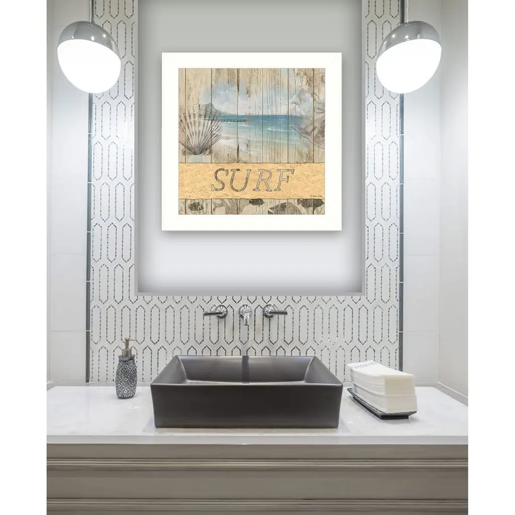 Add an air of fashion to your room and rejuvenate the space with this surf white framed print wall art. This print is a visual artistic expression that allows you to decorate your space in style. Reproduced for you on paper, this hanging decorative accent will be a trendy and fashionable way to dress your walls. Hang on your wall to add some up to date fashion and decoration. Instantly liven up your space with this art that brings color and dimension to your walls. 14" H x 14" W x 1" D