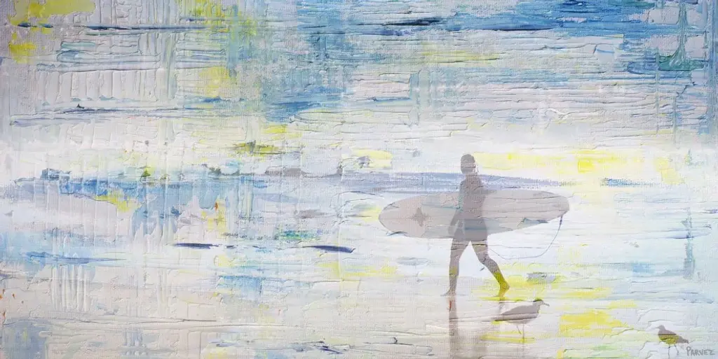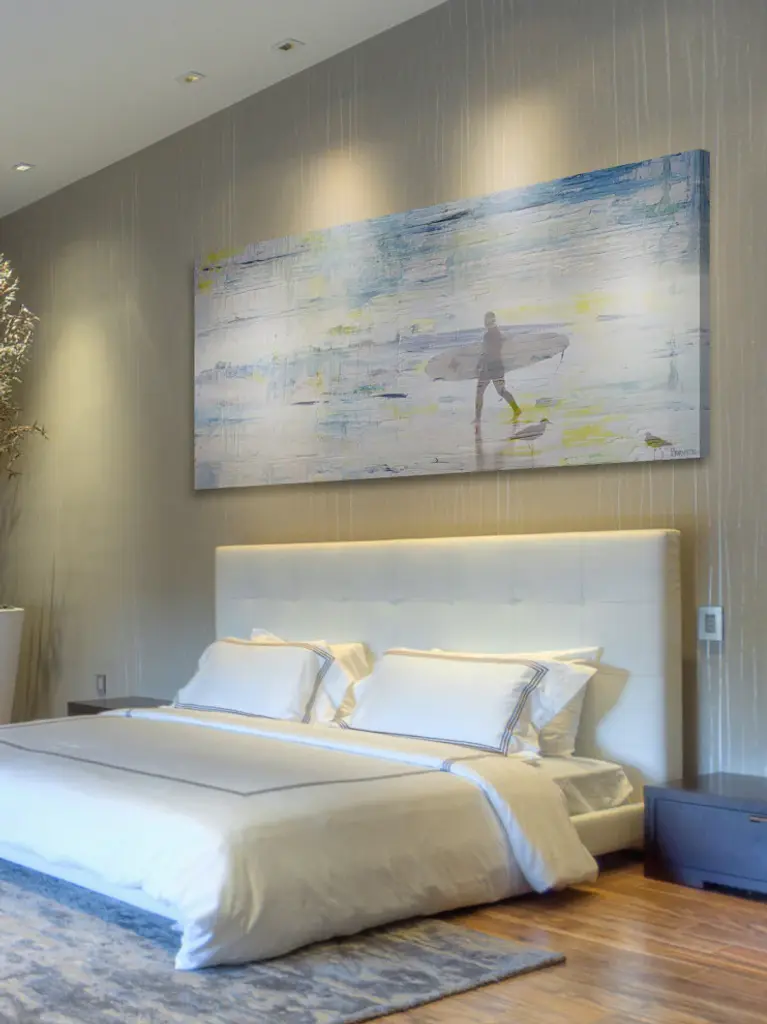 Striking and unique, the "Surfing Shadows" Painting Print on Wrapped Canvas by Parvez Taj will bring your walls to life. Printed on canvas, this 45 inch wide by 22.5 inch tall contemporary artwork will make a statement in any living room, dining room, or bedroom.- Fine art canvas print by Parvez Taj- Professionally hand stretched- Gallery wrapped in sustainable, non-warping Wood- Arrives ready to hang- Made in the USA- Includes a certificate of authenticity- Artist signature on the front