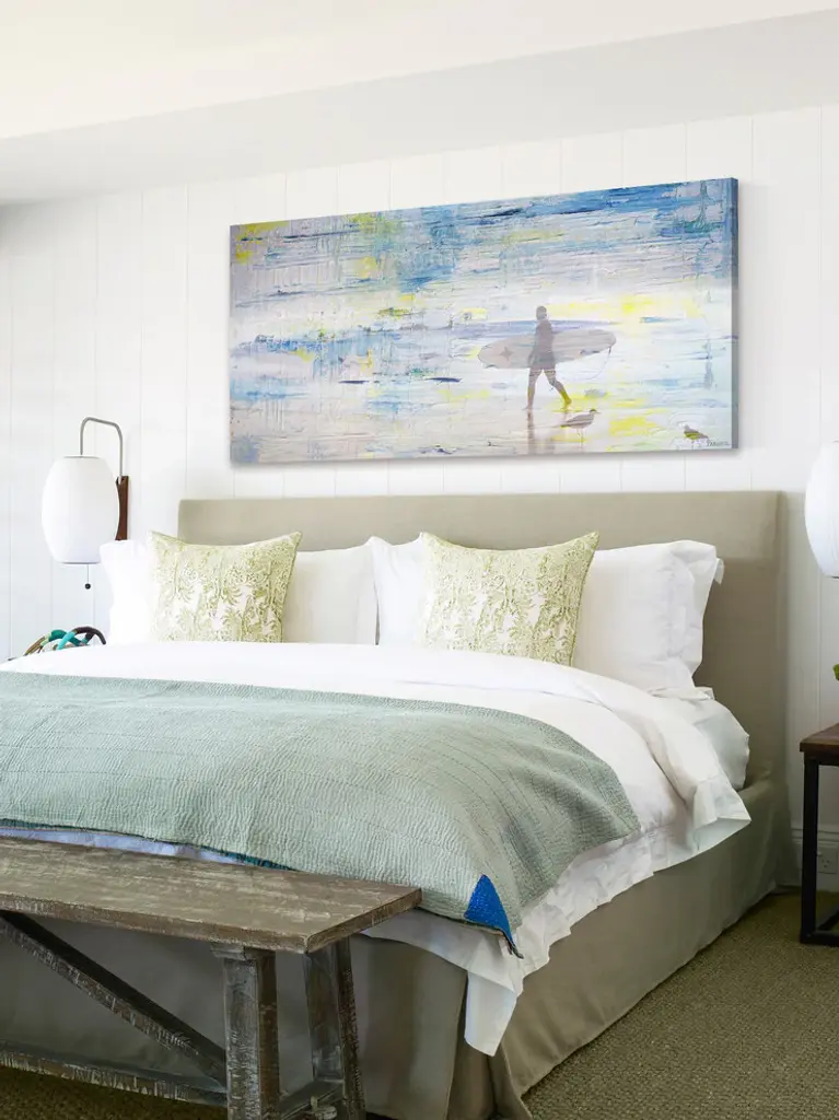 "Surfing Shadows" Painting Print On Wrapped Canvas, 45"x22.5"