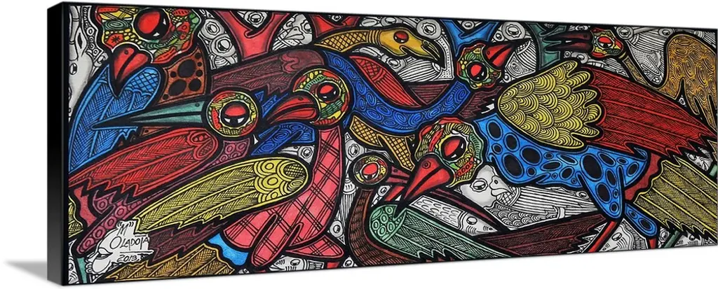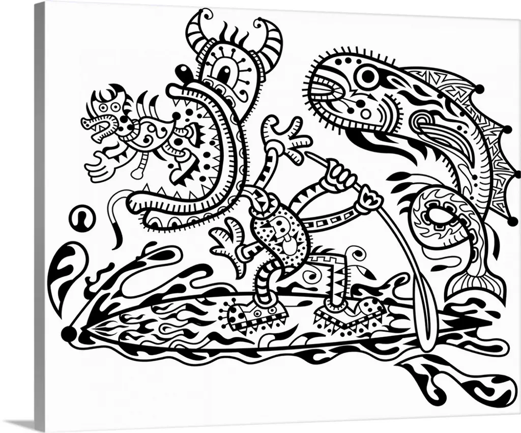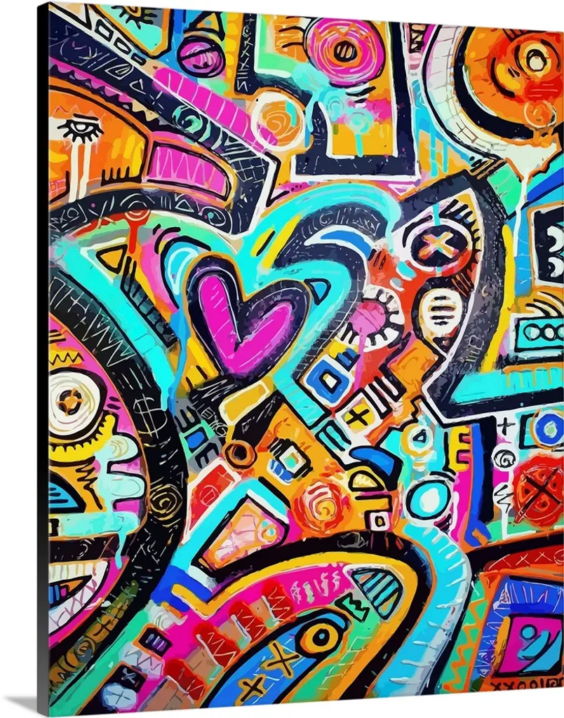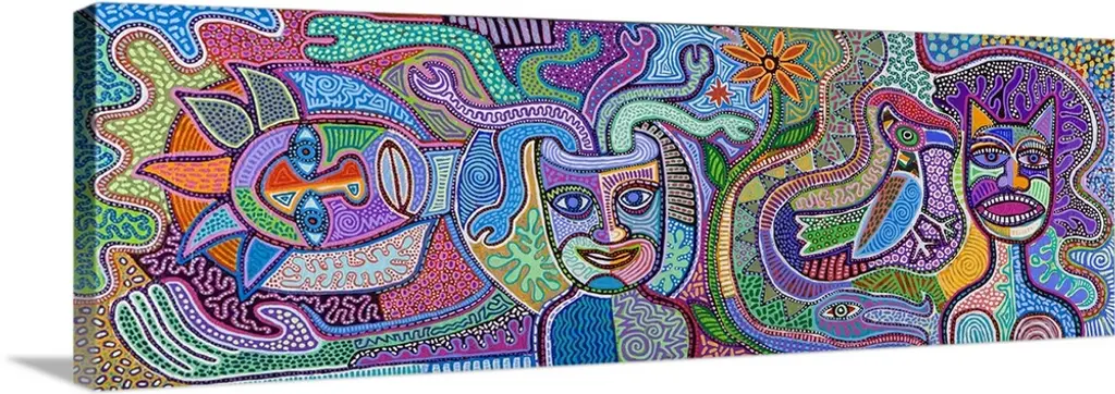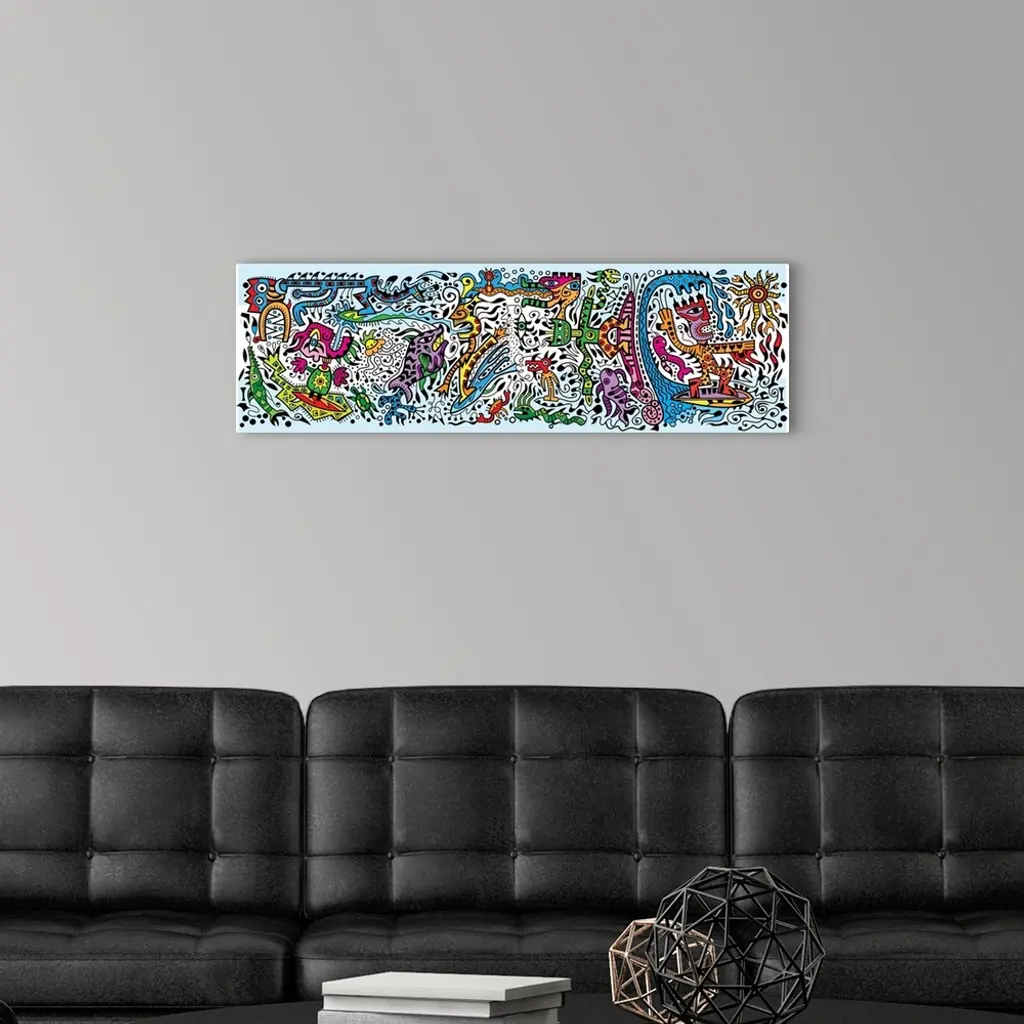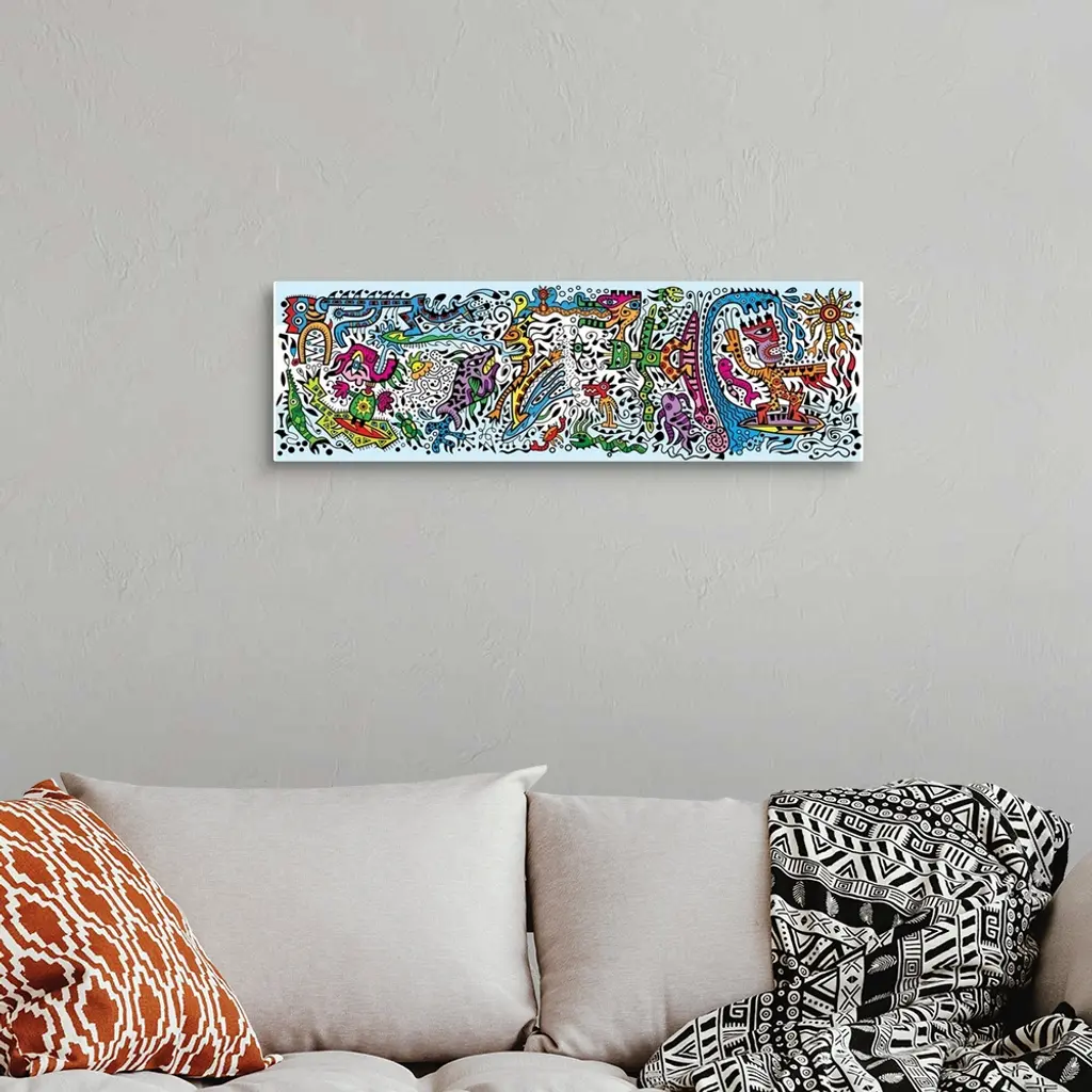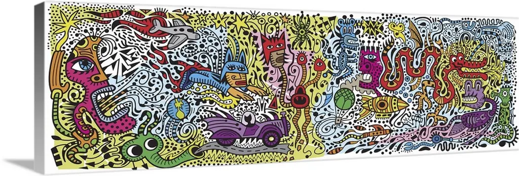 Contemporary mural artwork of monsters and other abstract figures in a confusion of colors and patterns.