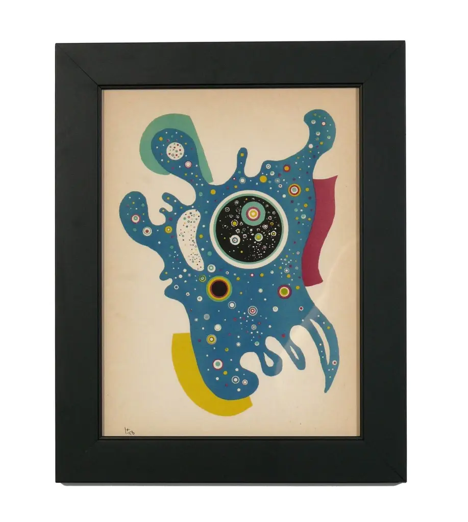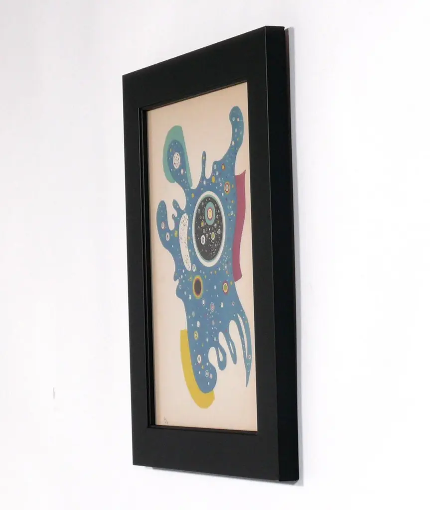 Selection of Surrealist Lithographs, by Wassily Kandinsky and Andre Masson for the limited edition 1938 portfolio Verve and printed by the famed French printer Mourlot. The one seen on the left in the first photo is entitled "Stars" by Kandinsky, and the one seen on the right in the first photo is entitled "Moon" by Masson. They have been recently professionally framed in black lacquered wood frames under UV resistant glass. They are priced at $650 each.