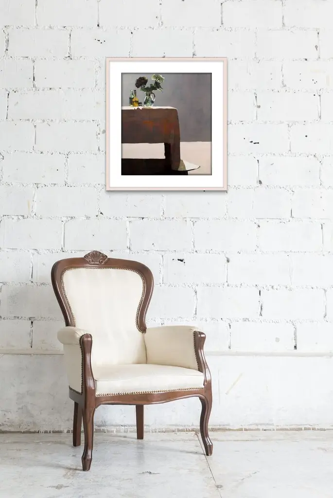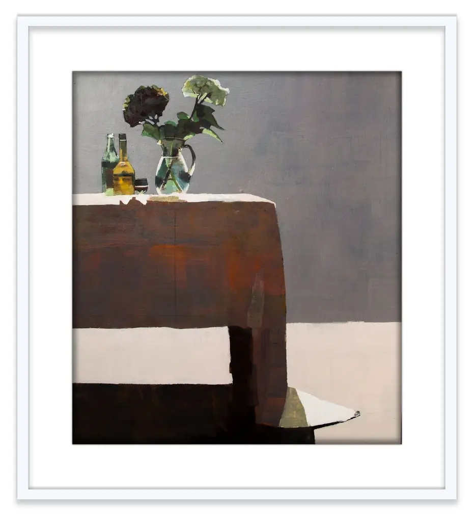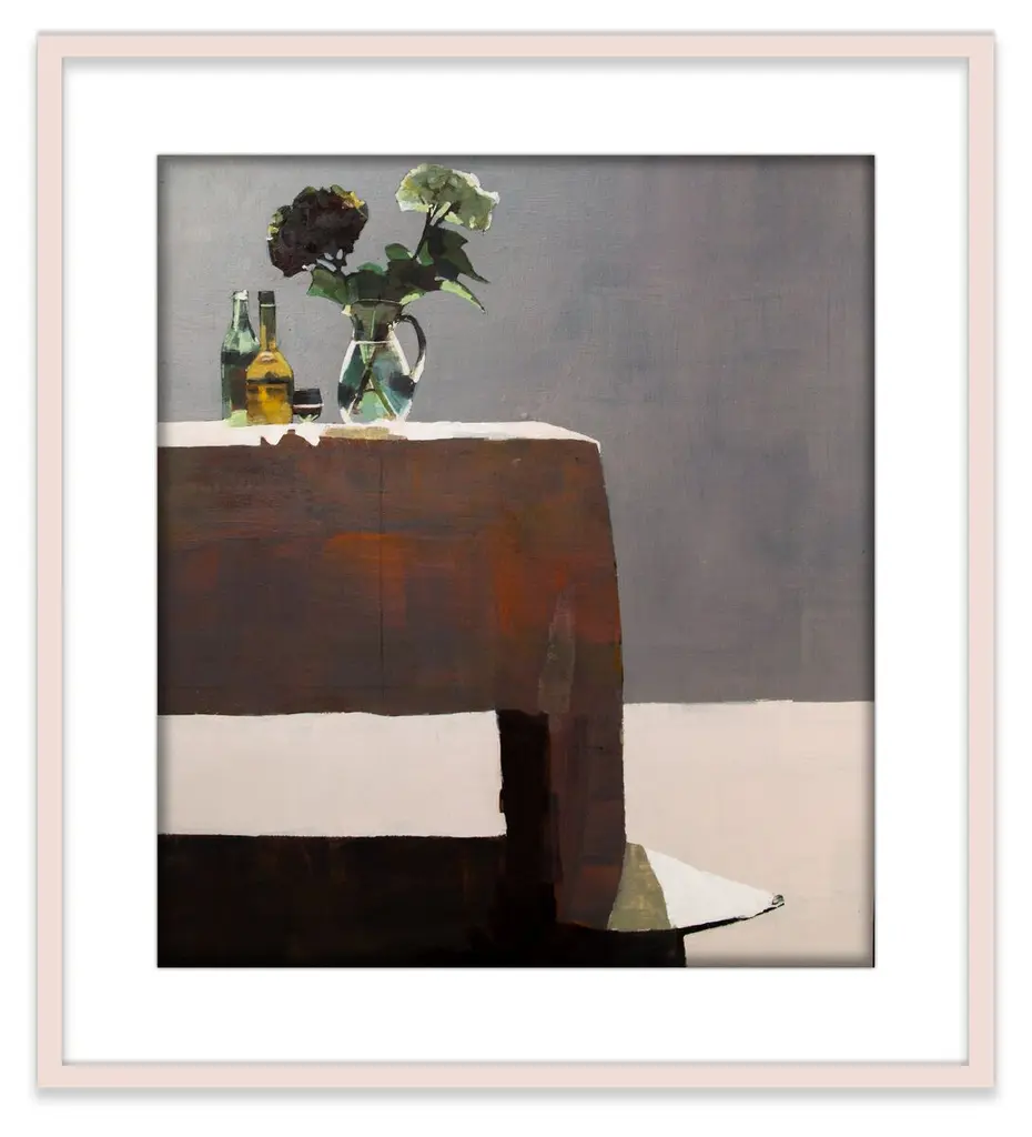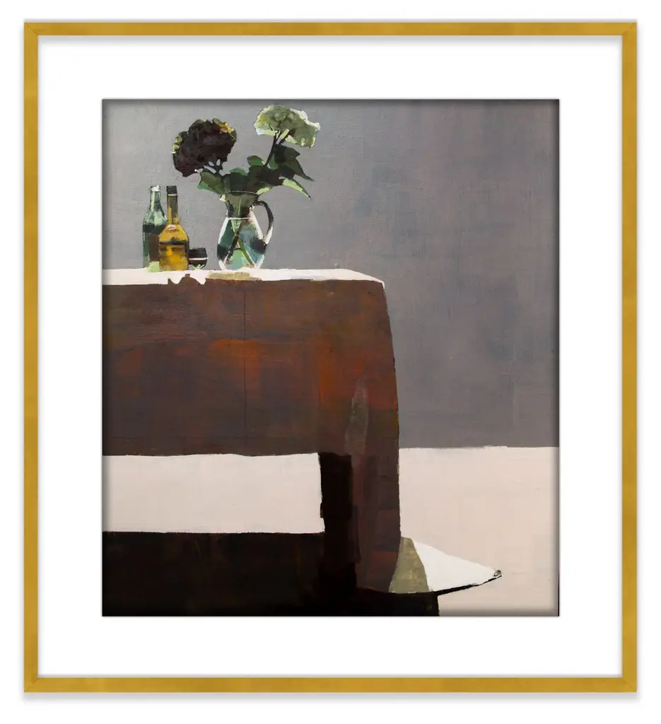 Seen first at One Kings Lane: This enchanting still life from Susan Ashworth depicts hydrangeas and sherry atop a tablecloth-draped table. A faithful reproduction of her original oil painting, this piece is printed on watercolor paper, matted, and displayed in a wood frame. Arrives ready to hang.UK-based artist Susan Ashworth is inspired by the tabletop images of Diebenkorn, Nicholson, and Letinsky, which is reflected in her still-life work. Her handling of paint explores the dynamics of representation, with constant play between the flat surface and the illusion of depth and solidity. Ashworth’s work has been exhibited in galleries throughout the UK.