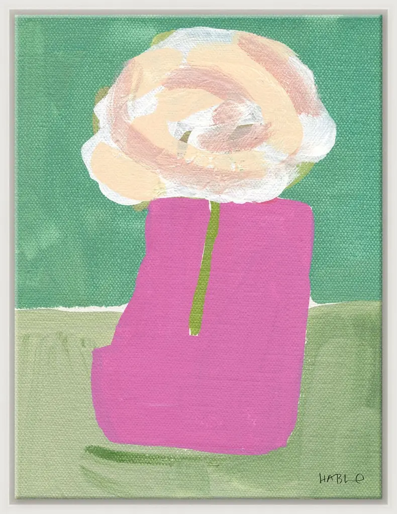 The apparent simplicity of Susan Hable's artwork belies a sophisticated use of color and composition. This still life is a colorful case in point. The giclée-on-canvas print arrives framed and ready to hang.