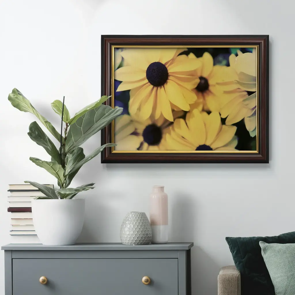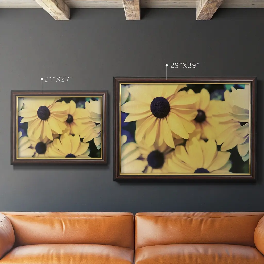 Susans I Premium Framed Canvas- Ready to Hang A Premium Framed Canvas created to last. Framed in distressed wood and available in an array of sizes and colors Featuring a beveled a solid wood stretcher bar, each piece comes ready to hand 3 SIZES AVAILABLE 16''X20'' - Overall Size 18'X27'' - Overall Size 24''x36'' - Overall Size Each piece is made to order. Each piece comes with hanging hardware. Made in the USA Ready to Hang Giclee Paper Print Acrylic Glass Beveled Matt Board