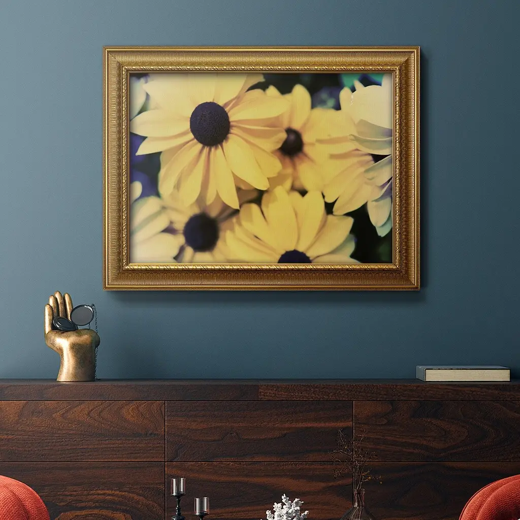 Susans I Premium Framed Canvas- Ready to Hang A Premium Framed Canvas created to last. Framed in distressed wood and available in an array of sizes and colors Featuring a beveled a solid wood stretcher bar, each piece comes ready to hand 3 SIZES AVAILABLE 16''X20'' - Overall Size 18'X27'' - Overall Size 24''x36'' - Overall Size Each piece is made to order. Each piece comes with hanging hardware. Made in the USA Ready to Hang Giclee Paper Print Acrylic Glass Beveled Matt Board
