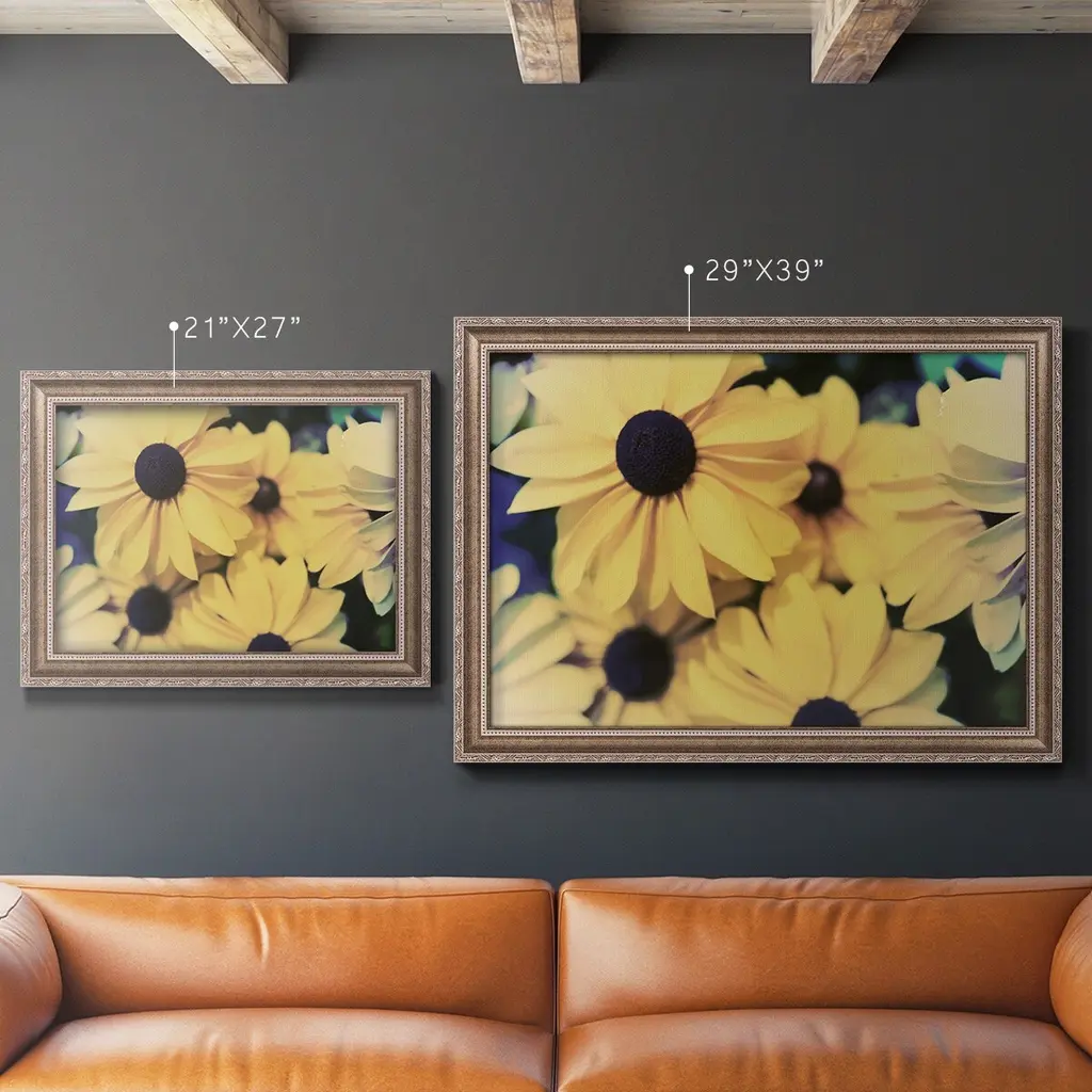 Susans I Premium Framed Canvas- Ready to Hang A Premium Framed Canvas created to last. Framed in distressed wood and available in an array of sizes and colors Featuring a beveled a solid wood stretcher bar, each piece comes ready to hand 3 SIZES AVAILABLE 16''X20'' - Overall Size 18'X27'' - Overall Size 24''x36'' - Overall Size Each piece is made to order. Each piece comes with hanging hardware. Made in the USA Ready to Hang Giclee Paper Print Acrylic Glass Beveled Matt Board
