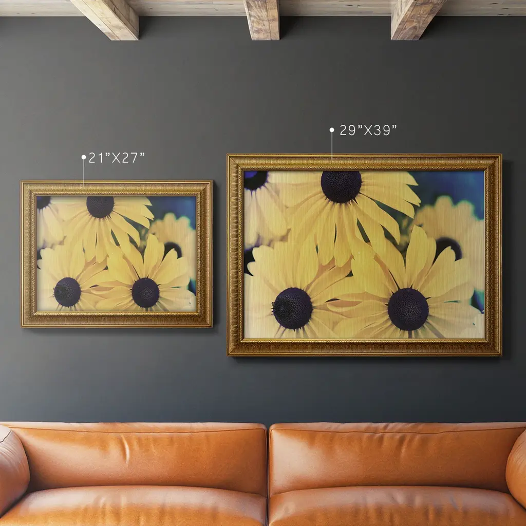 Susans II Premium Framed Canvas- Ready to Hang A Premium Framed Canvas created to last. Framed in distressed wood and available in an array of sizes and colors Featuring a beveled a solid wood stretcher bar, each piece comes ready to hand 3 SIZES AVAILABLE 16''X20'' - Overall Size 18'X27'' - Overall Size 24''x36'' - Overall Size Each piece is made to order. Each piece comes with hanging hardware. Made in the USA Ready to Hang Giclee Paper Print Acrylic Glass Beveled Matt Board