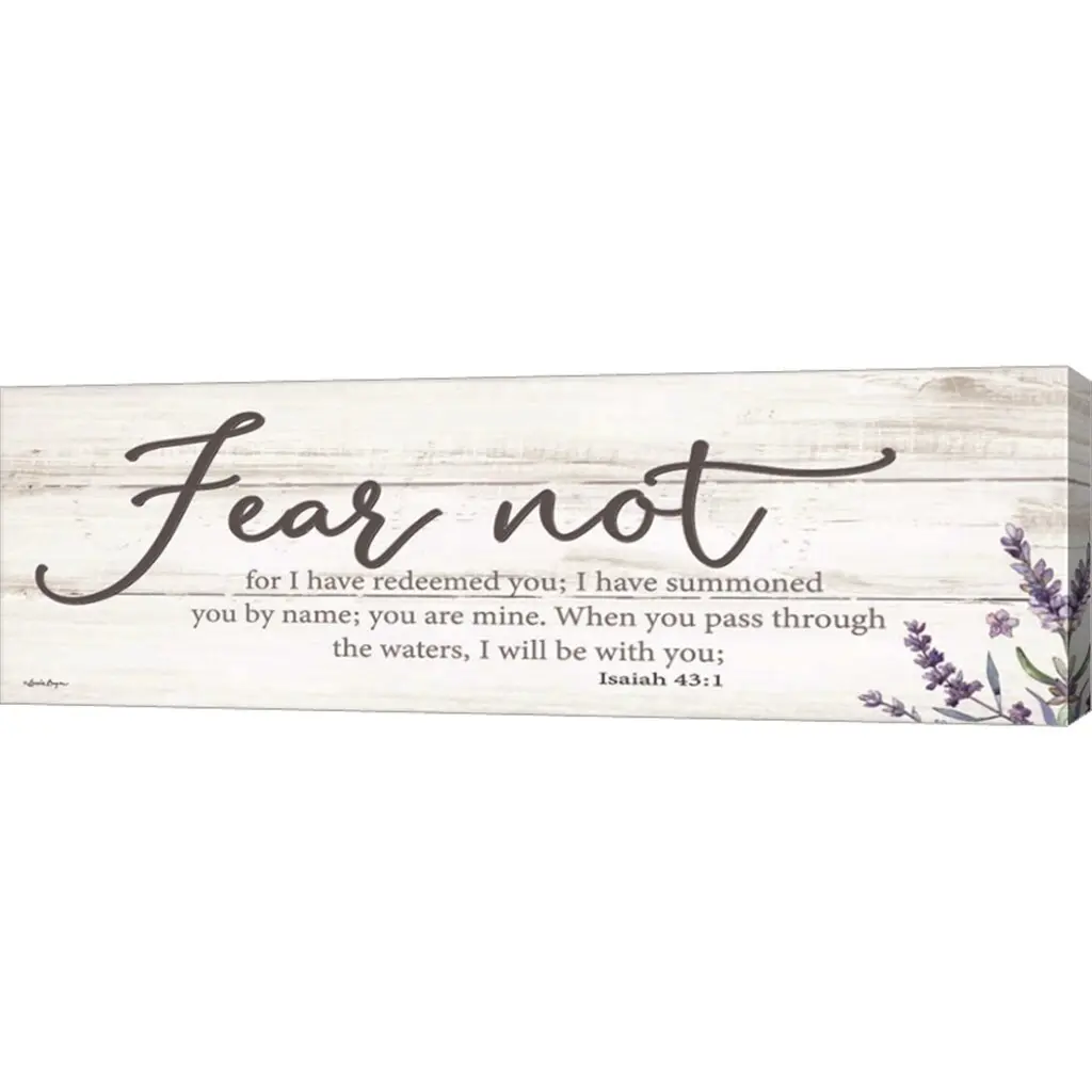 Fear Not by Susie Boyer is a high quality piece of canvas artwork. The finished size of this piece is 35.5" X 12", and it has a depth 1.5". There is a UV protective coating over the entire image, and it is ready to hang on your wall with no hardware required. 100% Satisfaction Guaranteed.