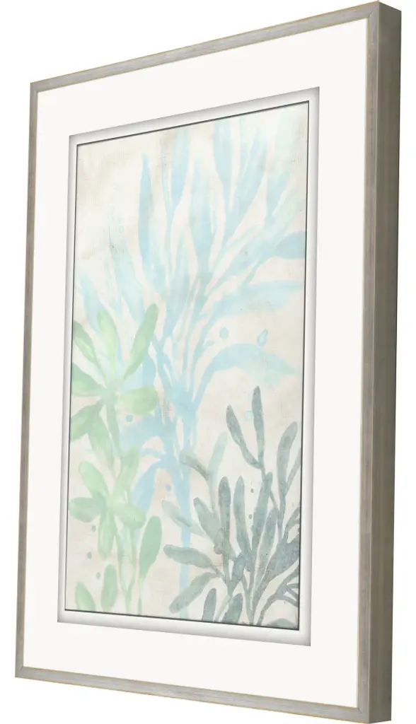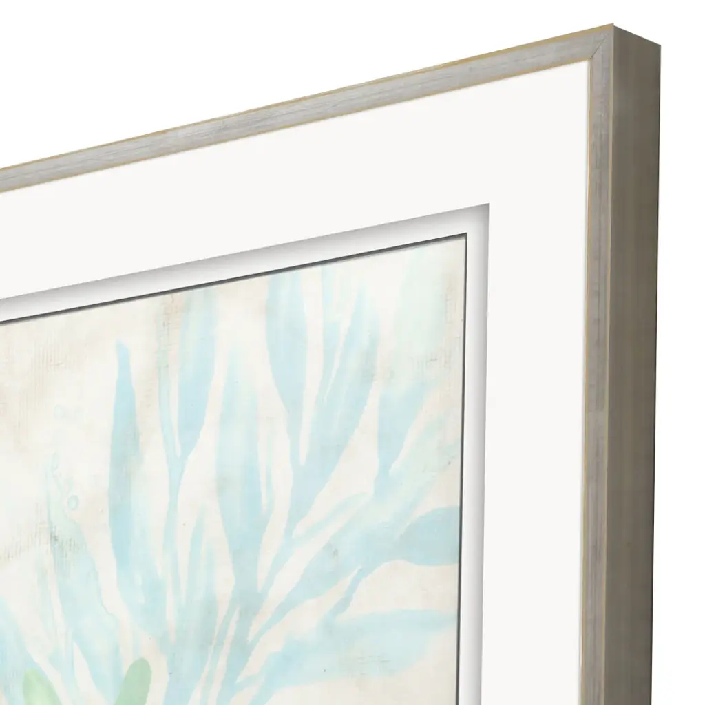 Hand embossed mixed media giclee. Framed in a contemporary shadow box style silver wood with gold accents.