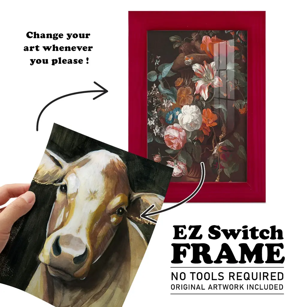 Sweet Eyes I -EZ SWITCH Framed Print w/glass-Cherry Red A delightful, framed print. Featuring a solid wood frame with real wood glass. This premium print is giclee quality. In addition, every frame features a removable back and table top stand. This allows you to change your art in the future or to just stand the art on a table for a new look. We are sure you'll enjoy our new series of EZ SWITCH Framed Art. Solid Wood Frame Real Glass Removable / Replaceable Art Built in Tabletop Stand Sizes range from 4x6 up to 12x15 - buy just one or pair them up as sets as you see fit.