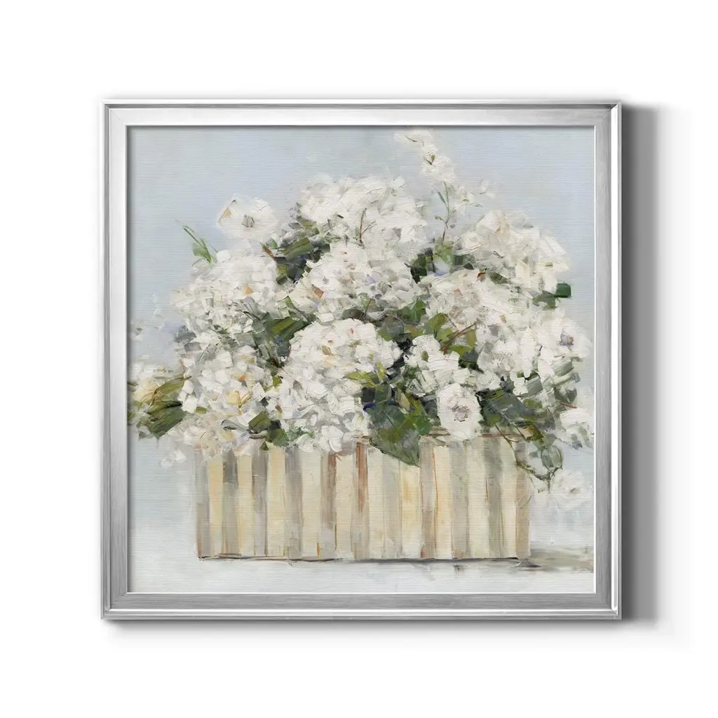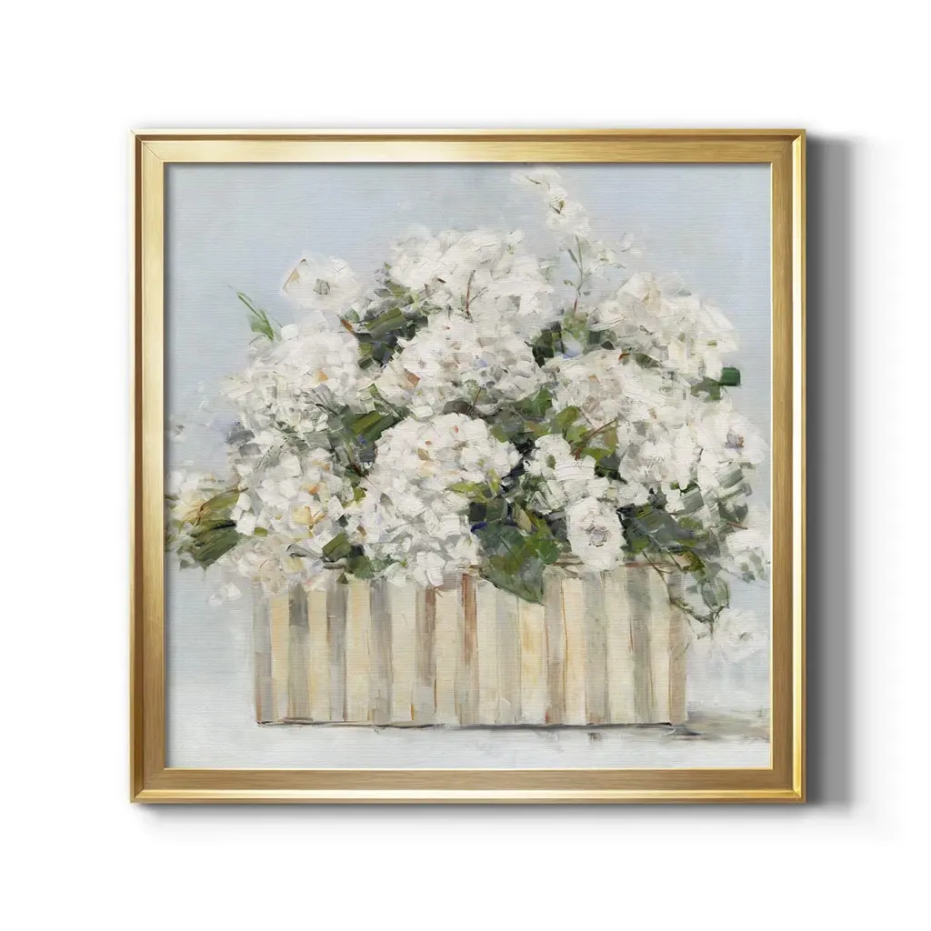 Sweet Hydrangeas-Premium Gallery Wrapped Canvas - Ready to Hang A premium hand stretched gallery wrapped canvas print created to last. Featuring a beveled a solid wood stretcher bar, each piece comes ready to hand 5 SIZES AVAILABLE 17.5''X17.5'' - Overall Size 22.5''x22.5'' - Overall Size 26.5''x26.5'' - Overall Size 30.5''x30.5'' - Overall Size 34.5''x34.5'' - Overall Size Each piece is made to order. Built to Last Each piece comes ready to hang Solid wood stretcher Fade and Water resistant Made domestically