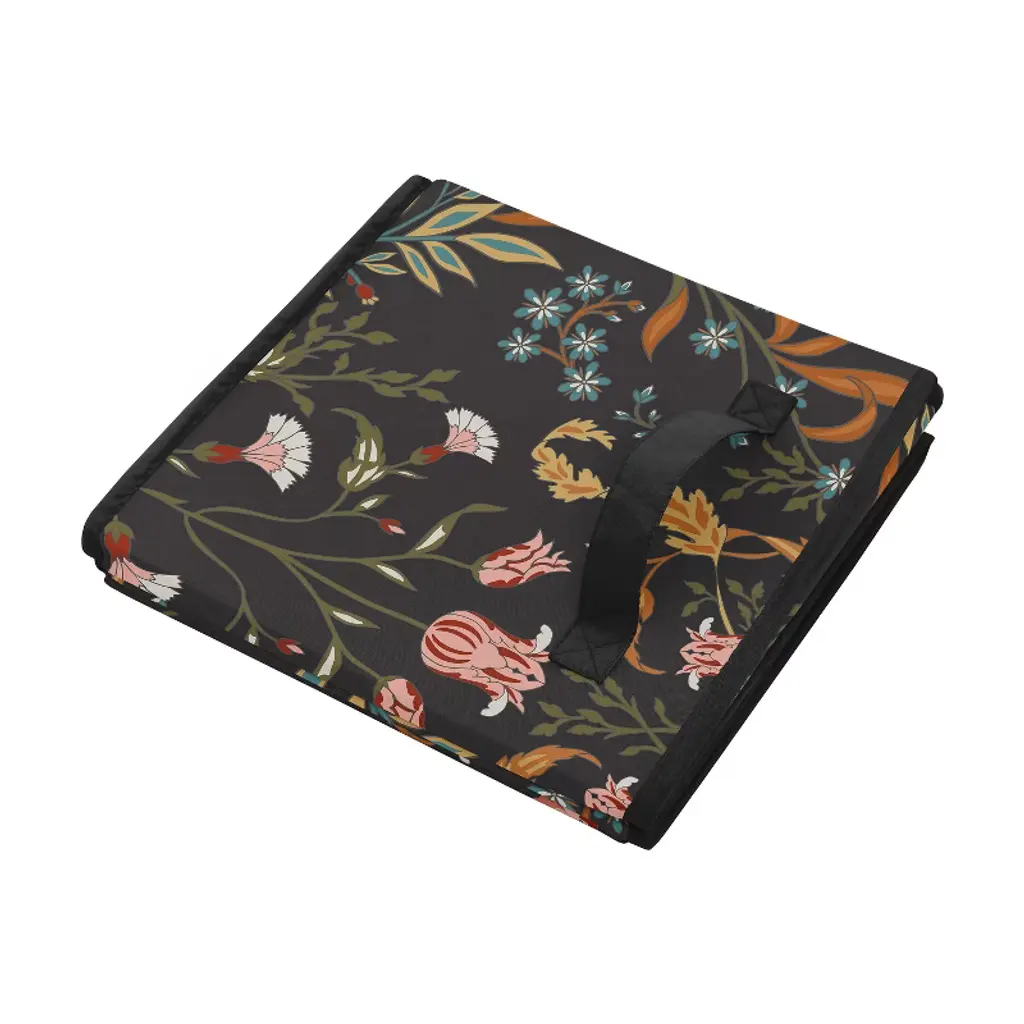 Boho Floral Wildflower Black and Orange Collection Sweet Jojo Designs storage bins are the perfect combination of decor and storage to bring a stylish update to your baby nursery, bed room, classroom, closet, kitchen, livingroom, college dorm, den, family room, foyer, gaming room, guest room, home gym, home office, apartment, attic, basement, bathroom, home theater, kids bed room, mud room, pantry, play room or garage. With the variety of designs available, any room for baby, children, teens, college students, or adults will be easily upgraded with these simple storage solutions. These collapsible fabric storage cubes feature exclusive patterns and prints to create a convenient and chic set of decorative bins to use for any occasion or age. Declutter your home with organizer bins to help meet your organization needs for all common household items such as small plush toys, stuffed animals, baby clothing, shoes, wash cloths, books, kids clothes, household clutter and more. Use this set of two foldable storage cubes in most standard cubby-hole shelving furniture or as stand-alone bins. Made from a flexible and foldable material, simply fold flat and store for easy space saving storage when not in use. Pair your set of organizing bins with your favorite Sweet Jojo Designs collections and coordinate with our crib bedding sets, twin or queen bed sets, window valances, and room decor accessories to give you a complete look for any room in your home. Use storage bins with handles to organize and store all your household clutter while also serving as decorative room decor. These storage baskets for organizing can be placed in your nursery, closet, college dorm, den, family room, foyer, apartment, attic, basement, bathroom, bedroom, classroom, gaming room, guest room, home gym, home office, home theater, kids bed room, kitchen, living room, mud room, pantry, play room or garage. Kid friendly storage solutions are perfect for holding your children’s items, newborn essentials, or general home goods such as blankets, pillows, Montessori educational supplies, toys, sheets, books, linens, towels, clothing, dog toys and more. Makes the perfect gift to coordinate with Sweet Jojo Designs nursery bedding, crib sheets, changing pad covers, nursing pillow covers, duvets, sheet sets, window treatments, wall decor, and home decor accessories. It can also double as a functional decorative alternative to paper boxes, gift bags or wrapping paper by holding your birthday presents, baby shower gifts and gender reveal presents within the decorative bins. These brushed microfiber fabric storage bins feature an exclusive design of a black, rust orange, teal turquoise blue, green, pink and yellow bohemian farmhouse daisy leaves botanical paisley leaf flower garden cottagecore indie rustic boho wildflower vintage floral print with black cotton fabric handle.