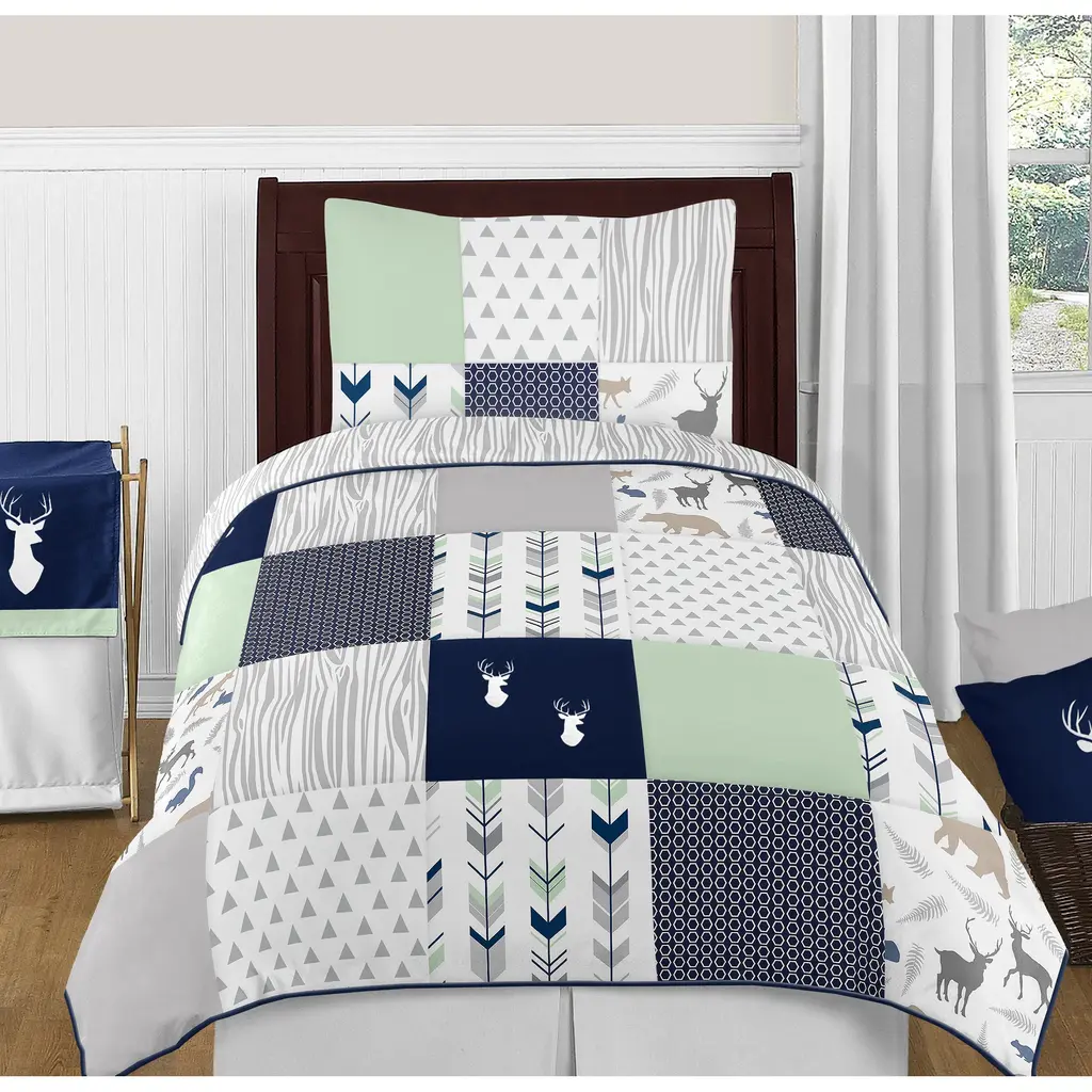 Sweet Jojo Designs Navy And Mint Woodsy Comforter Set - Toddler