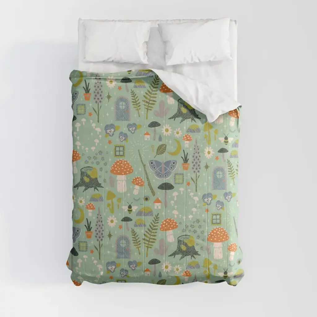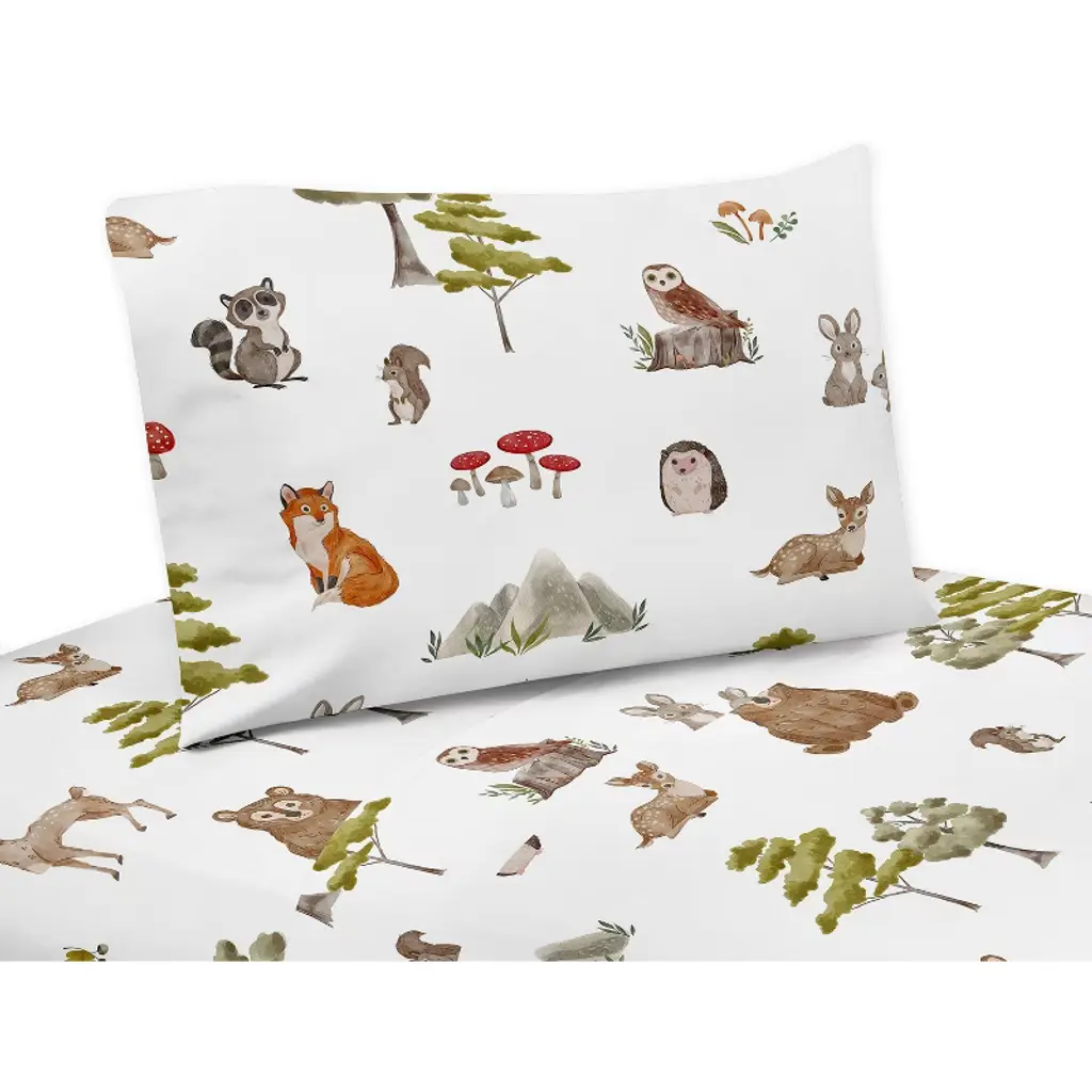 Sweet Jojo Designs Woodland Forest Animals Boy Girl Gender Neutral 5P Toddler-Size Comforter Set Friends Fox Hedgehog Watercolor - Toddler - Green Brown White