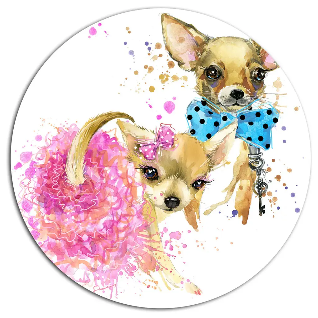 Bring Contemporary Abstraction to your home with this large Circle Metal wall art. This Sweet Pink Dog with Glasses Metal Artwork makes it the focal point of any room or office. - White Gloss Coating ensures colors are extra vibrant with light reflection.- Aluminum grade Sheet Metal with 1 inch mounting frame on the back giving the illusion that the artwork is floating on the wall..- Mounting Brackets are included along with instructions.- High Quality Digital images are created directly into a glossy aluminum panel producing a stunning and captivating print into the glossy finish of the metal.- Water, Fire and Scratch resistant HD Aluminum panels.- Looks better than any photo paper and guaranteed to last at least 20 years- Easy to clean with a microfiber cloth. Colors are far superior to regular Canvas Art. - Easy to Hang