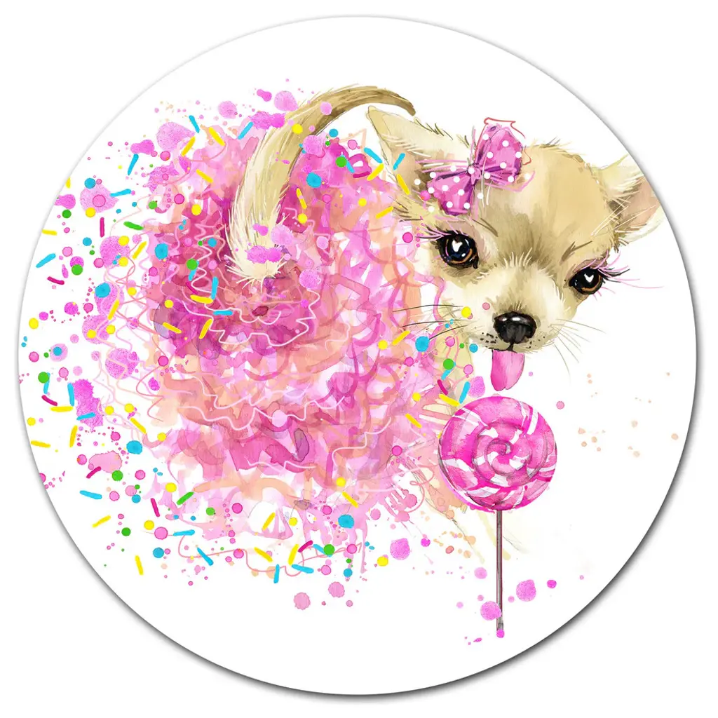 Sweet Pink Dog With Glasses, Animal Round Wall Art, 11"