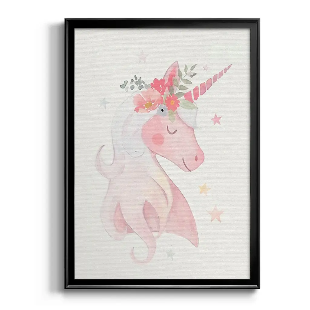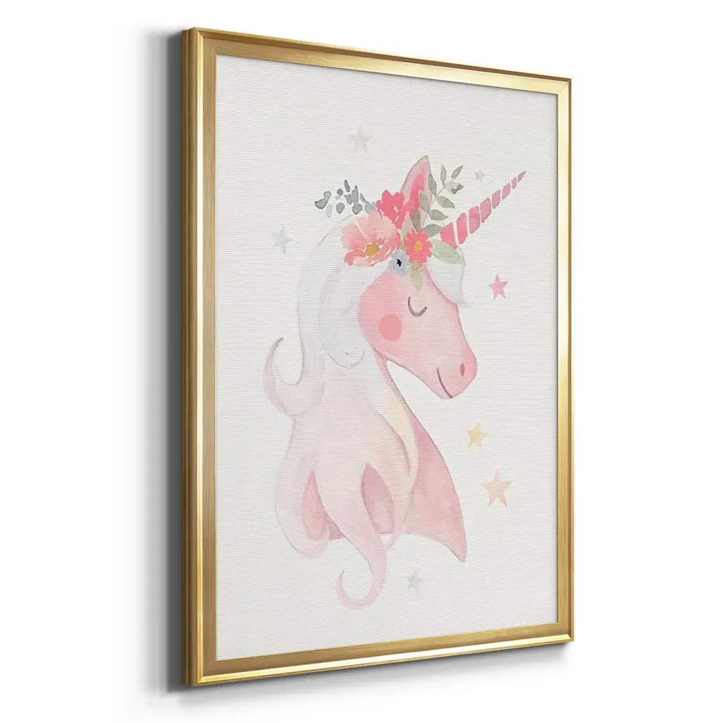 Sweet Unicorn II Premium Framed Print - Ready to Hang A Premium Framed Print created to last. Framed in distressed wood and available in an array of sizes and colors Featuring a beveled a solid wood stretcher bar, each piece comes ready to hand 4 SIZES AVAILABLE 30.5''X42.5'' - Overall Size 26.5'X36.5'' - Overall Size 22.5''x30.5'' - Overall Size 18.5''x24.5'' - Overall Size Each piece is made to order. Each piece comes with hanging hardware. Made in the USA Ready to Hang