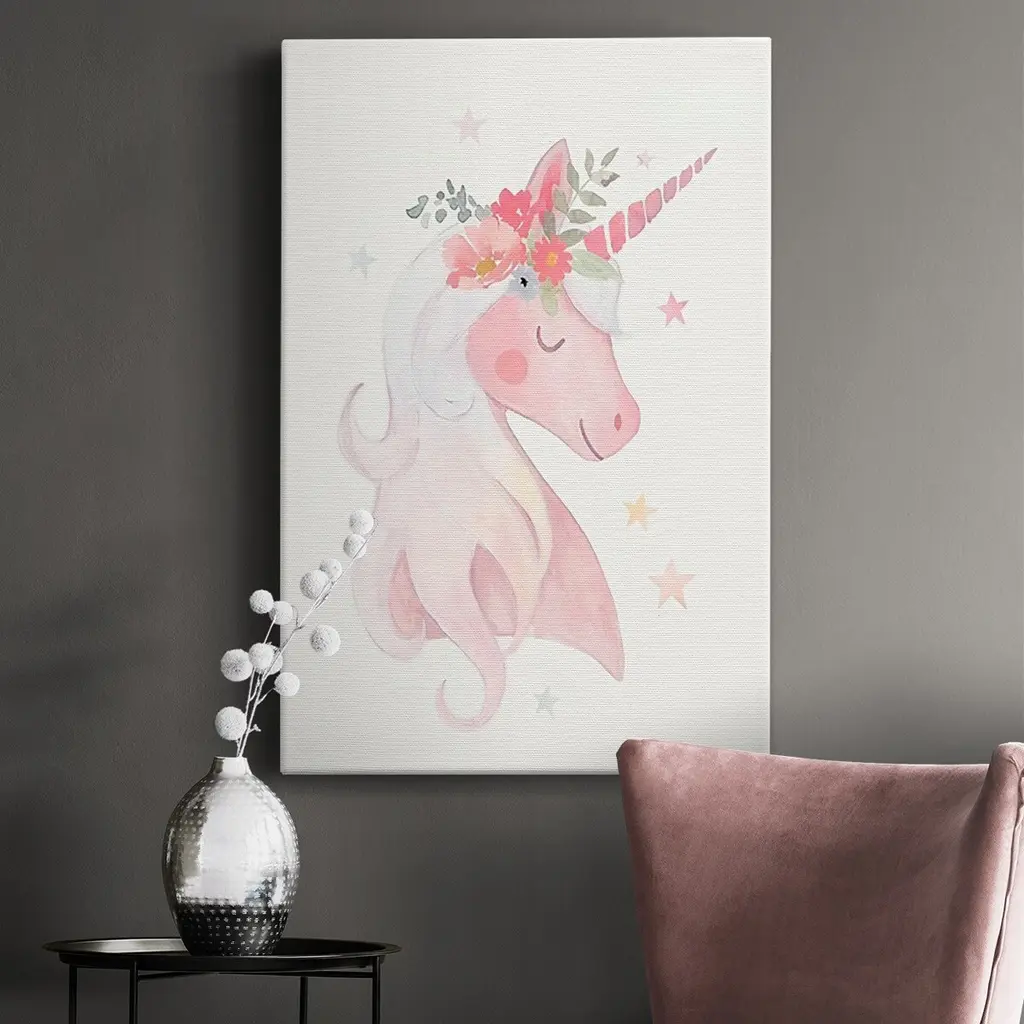 Sweet Unicorn II Premium Gallery Wrapped Canvas - Ready to Hang A premium hand stretched gallery wrapped canvas print created to last. Featuring a beveled a solid wood stretcher bar, each piece comes ready to hand 6 SIZES AVAILABLE 8''X12'' - Overall Size 12''X18'' - Overall Size 18''X27'' - Overall Size 24''x36'' - Overall Size 32''x48'' - Overall Size 40''x60'' - Overall Size Each piece is made to order. Built to Last Each piece comes ready to hang Solid wood stretcher Fade and Water resistant Made domestically