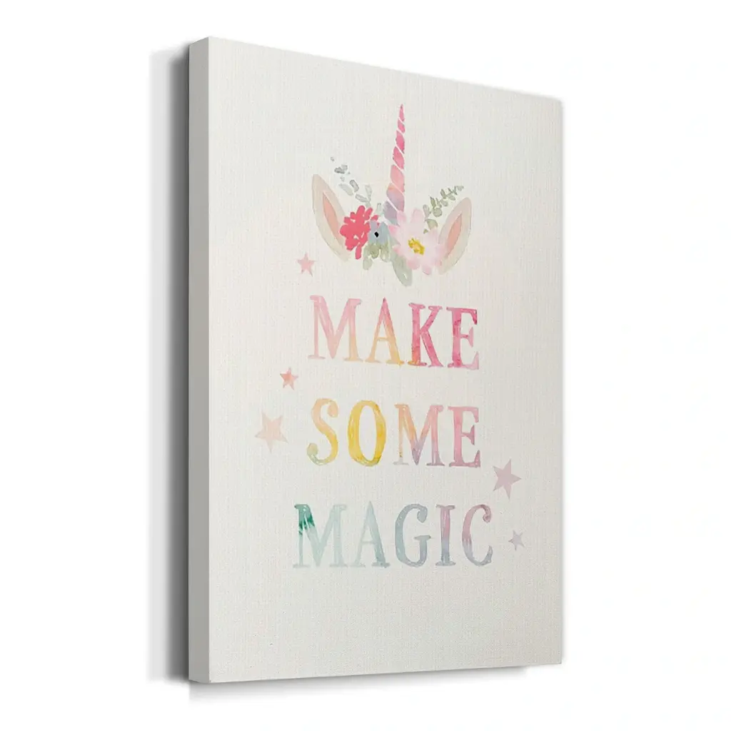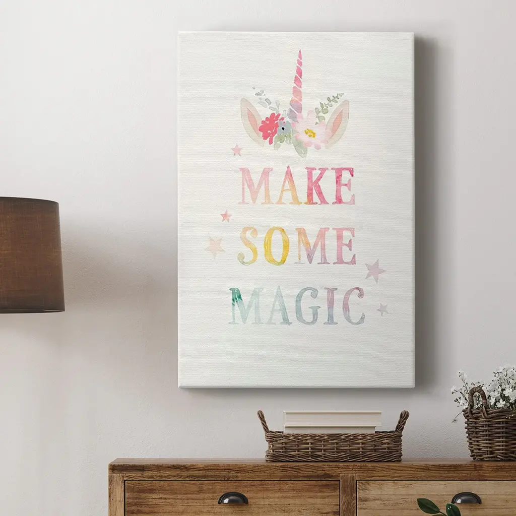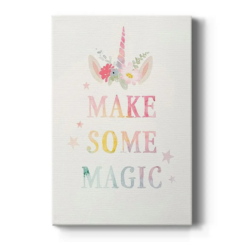 Sweet Unicorn IV Premium Gallery Wrapped Canvas - Ready to Hang A premium hand stretched gallery wrapped canvas print created to last. Featuring a beveled a solid wood stretcher bar, each piece comes ready to hand 6 SIZES AVAILABLE 8''X12'' - Overall Size 12''X18'' - Overall Size 18''X27'' - Overall Size 24''x36'' - Overall Size 32''x48'' - Overall Size 40''x60'' - Overall Size Each piece is made to order. Built to Last Each piece comes ready to hang Solid wood stretcher Fade and Water resistant Made domestically
