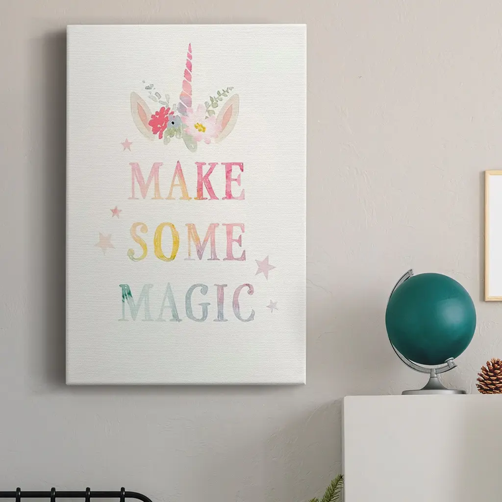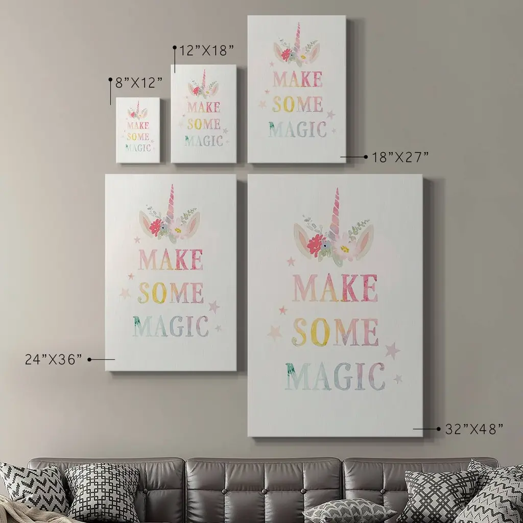 Sweet Unicorn IV Premium Gallery Wrapped Canvas - Ready to Hang A premium hand stretched gallery wrapped canvas print created to last. Featuring a beveled a solid wood stretcher bar, each piece comes ready to hand 6 SIZES AVAILABLE 8''X12'' - Overall Size 12''X18'' - Overall Size 18''X27'' - Overall Size 24''x36'' - Overall Size 32''x48'' - Overall Size 40''x60'' - Overall Size Each piece is made to order. Built to Last Each piece comes ready to hang Solid wood stretcher Fade and Water resistant Made domestically
