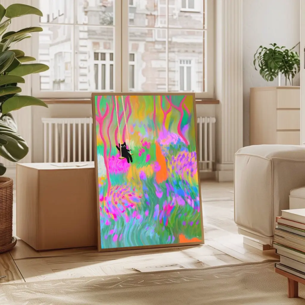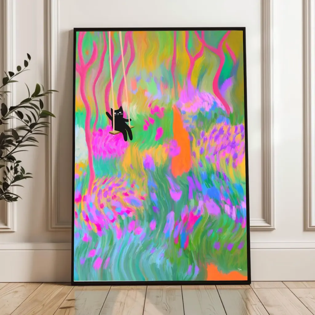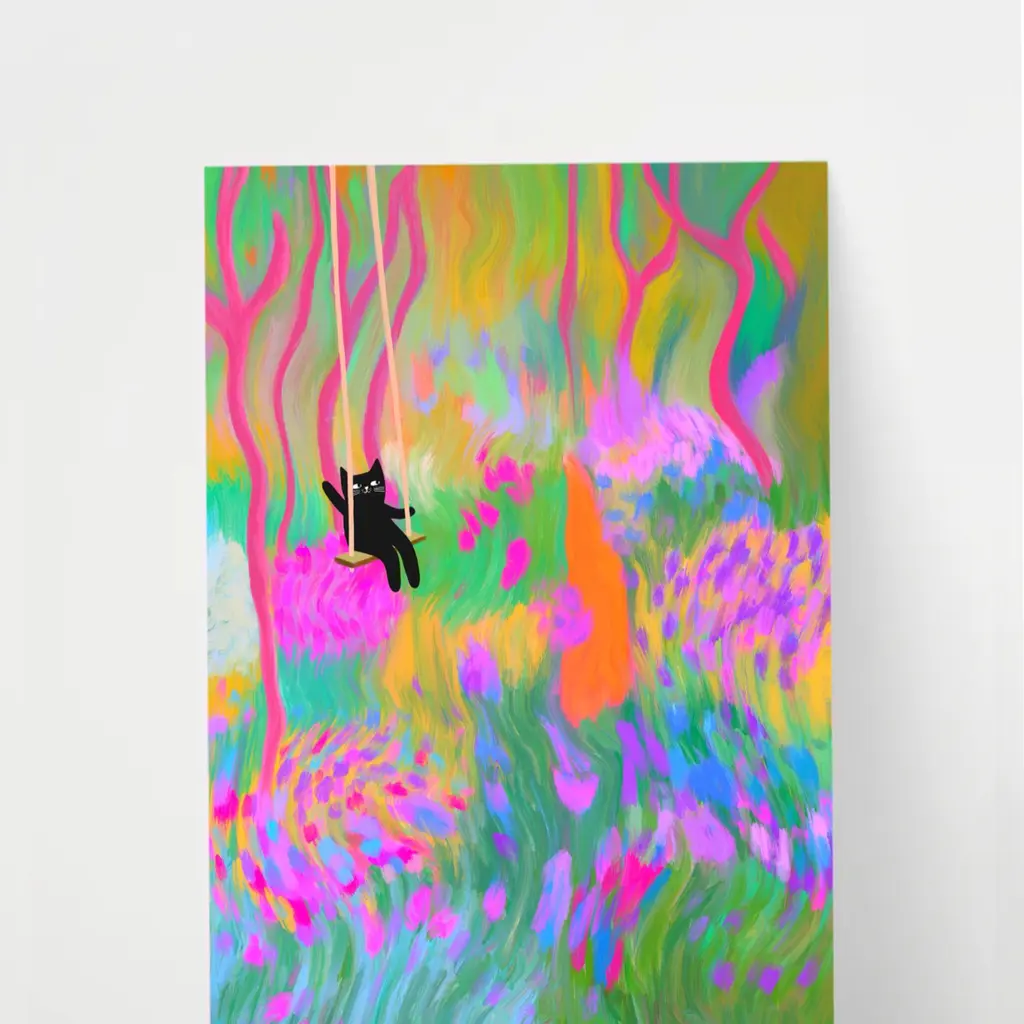 Swinging Cat - Art Print - LargeIllustrated by Maria. This print is perfect for all cat lovers alike! Printed in the U.K.Printed on premium matte, fine art, archival paperPaper weight: 230 gsmSold without a frame.