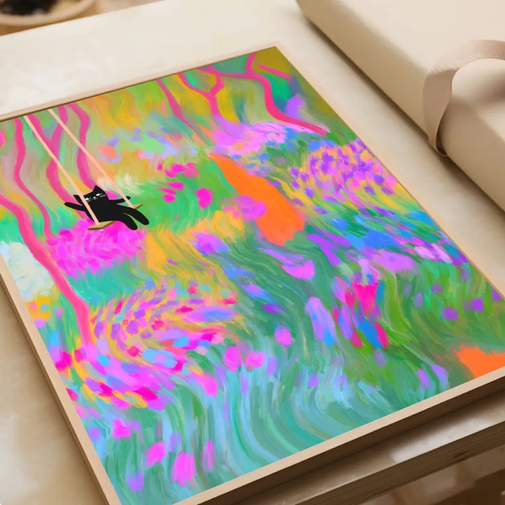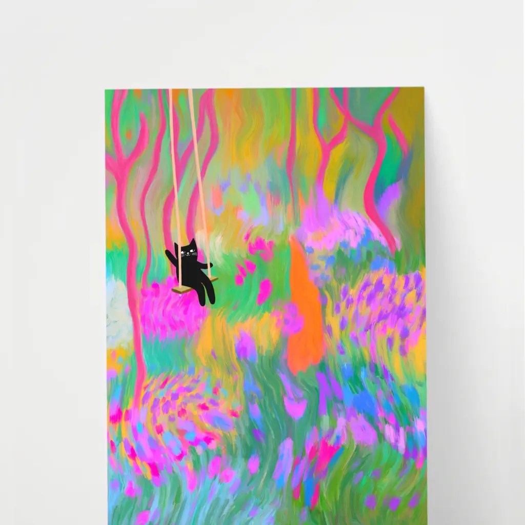 Swinging Cat - Art Print - Medium Illustrated by Maria. This print is perfect for all cat lovers alike! Printed in the U.K.Printed on premium matte, fine art, archival paperPaper weight: 230 gsmSold without a frame.