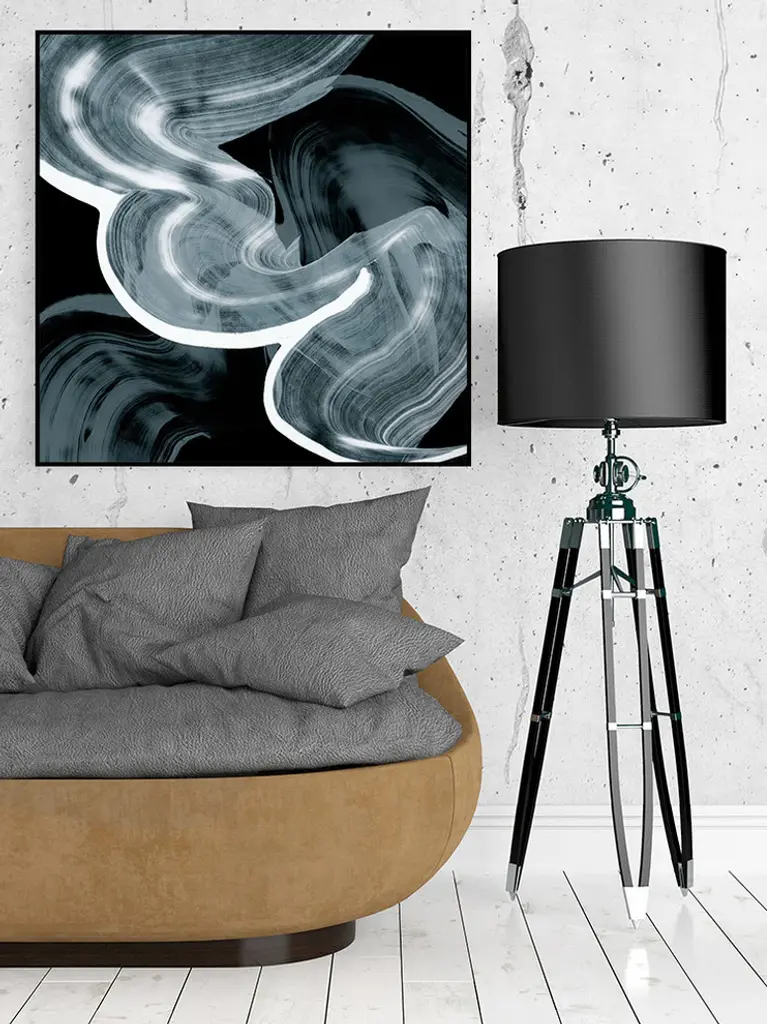 Your ready to hang artwork is printed on canvas then stretched and mounted to a 2-inch thick - hand stained black wood frame. Arrives at your door complete with an easy to use self-leveling hangking kit.