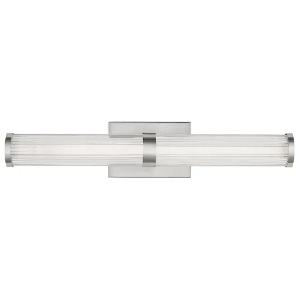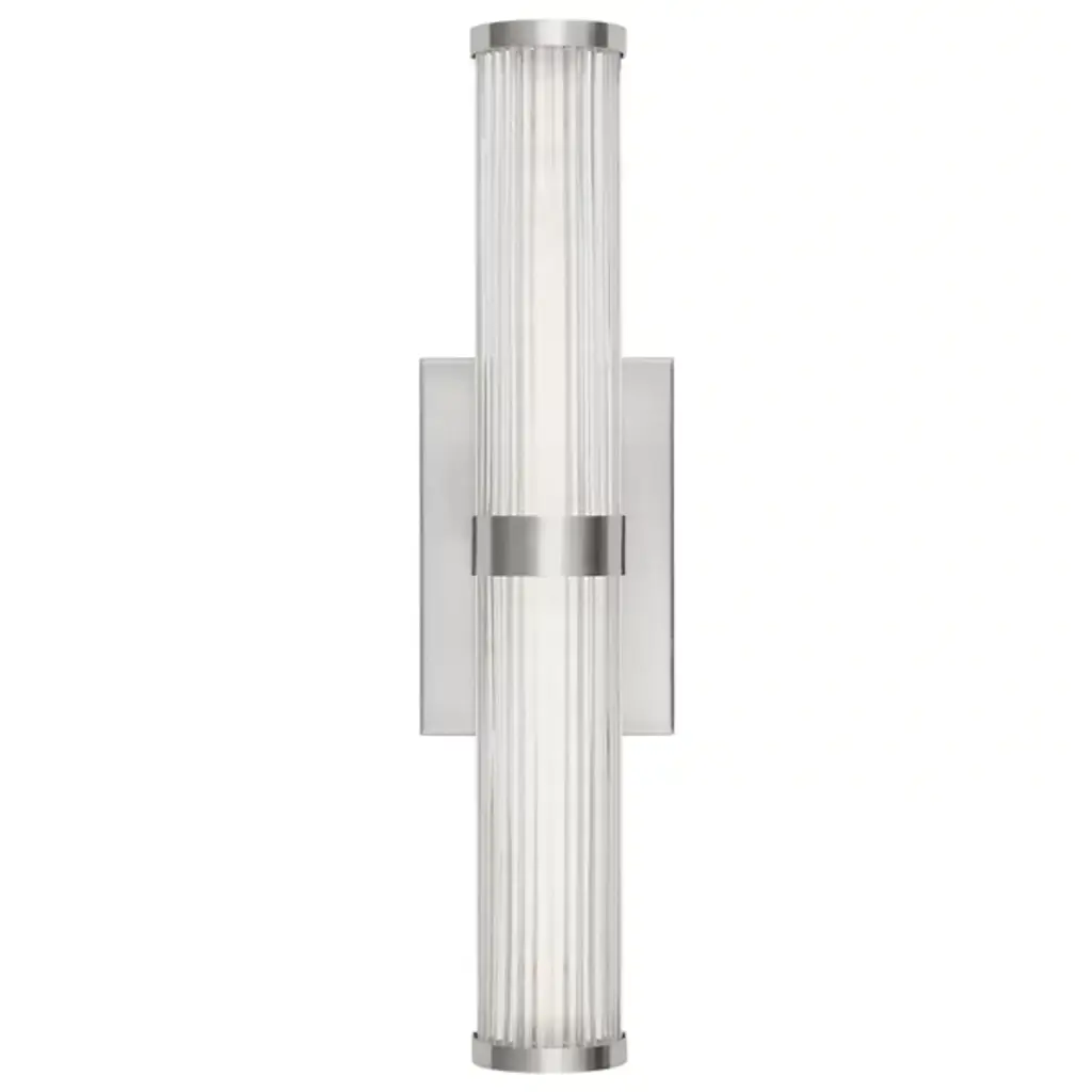 Finish getting ready with the Syden LED Vanity Light by Visual Comfort Studio, formerly known as Sea Gull Lighting, Syden is crafted of fine steel with a clean-lined backplate and ridged glass shade. This understated detailing makes for a versatile design at home in either modern, transitional or traditional interiors. Syden can be mounted horizontally or vertically.