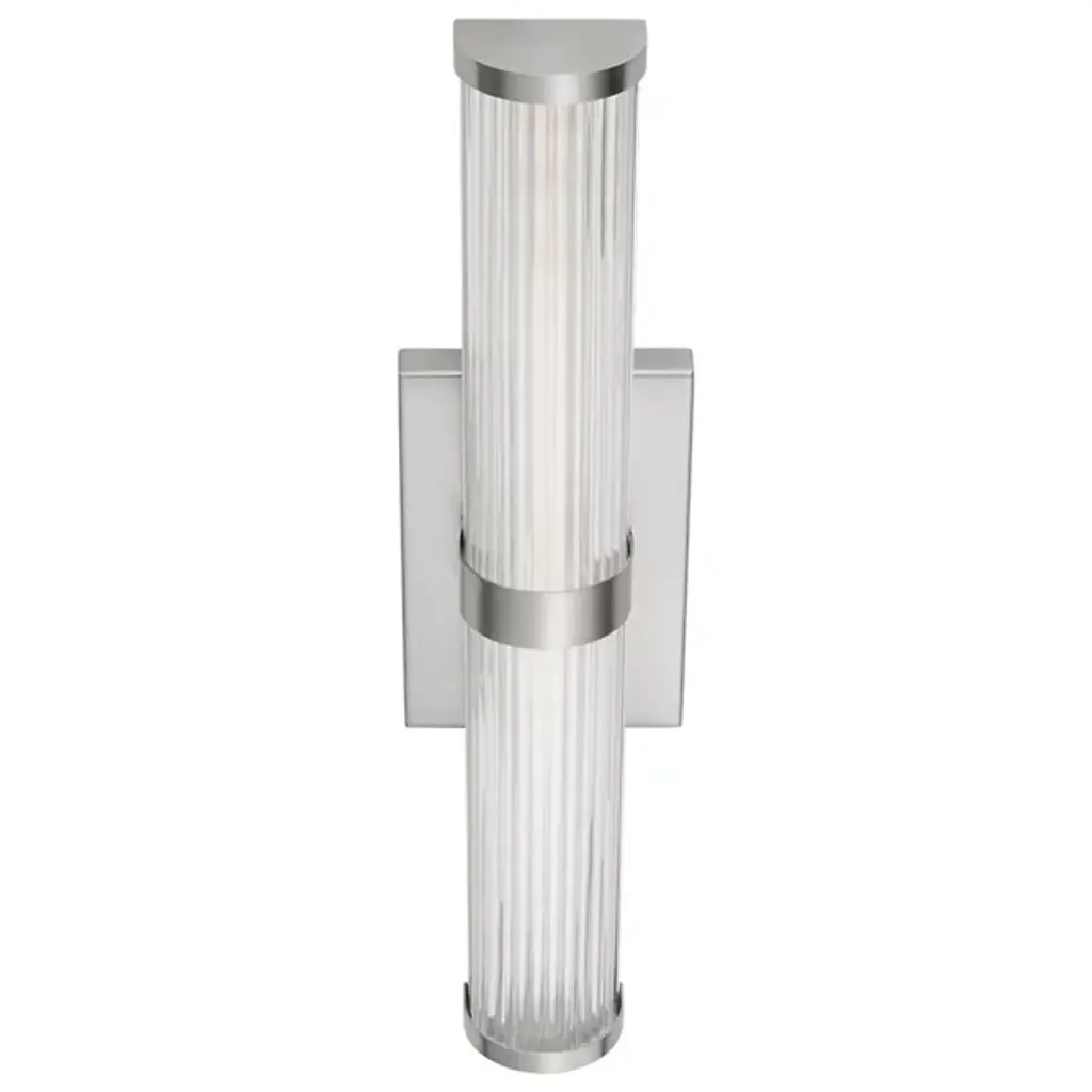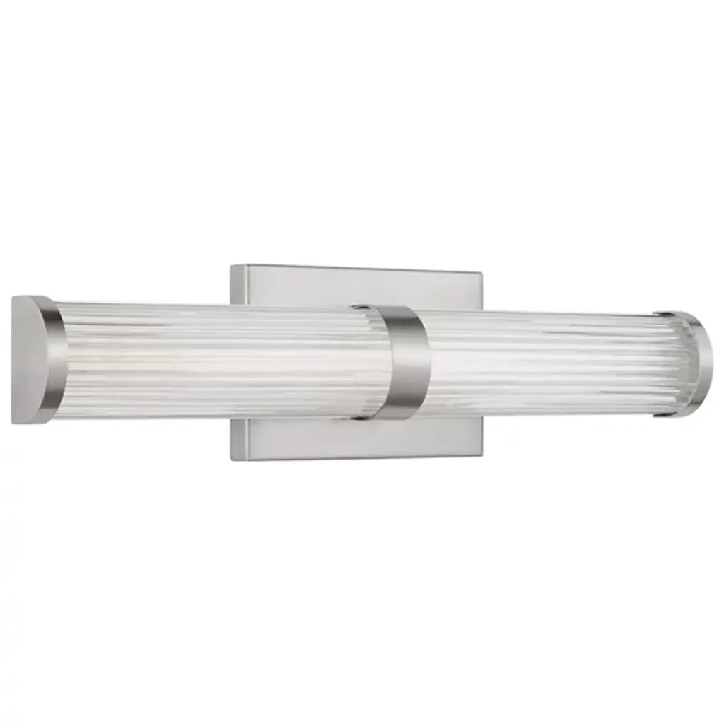 Finish getting ready with the Syden LED Vanity Light by Visual Comfort Studio, formerly known as Sea Gull Lighting, Syden is crafted of fine steel with a clean-lined backplate and ridged glass shade. This understated detailing makes for a versatile design at home in either modern, transitional or traditional interiors. Syden can be mounted horizontally or vertically.