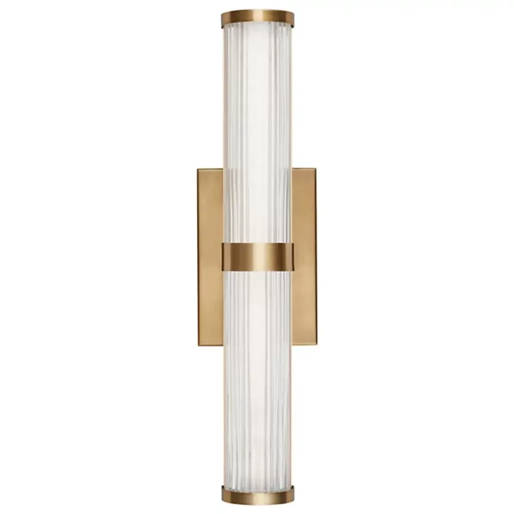 Finish getting ready with the Syden LED Vanity Light by Visual Comfort Studio, formerly known as Sea Gull Lighting, Syden is crafted of fine steel with a clean-lined backplate and ridged glass shade. This understated detailing makes for a versatile design at home in either modern, transitional or traditional interiors. Syden can be mounted horizontally or vertically.
