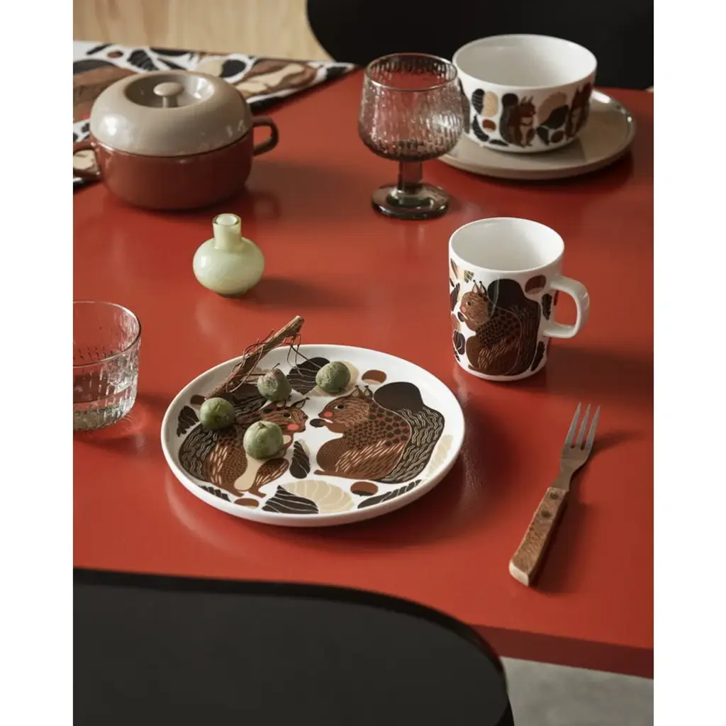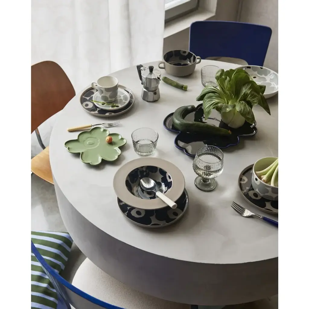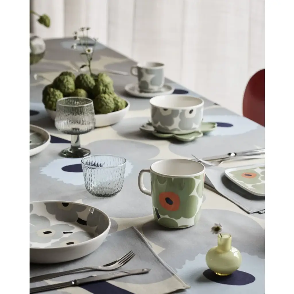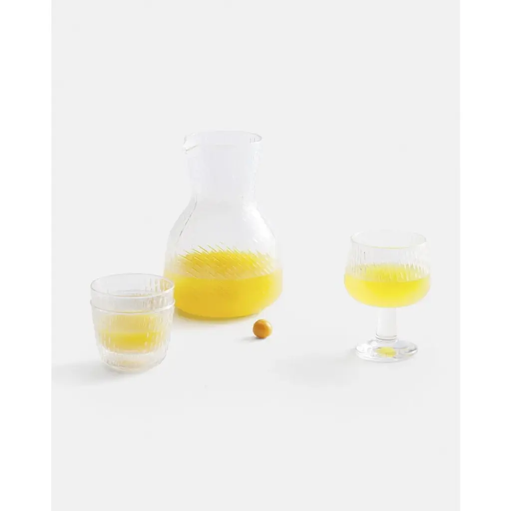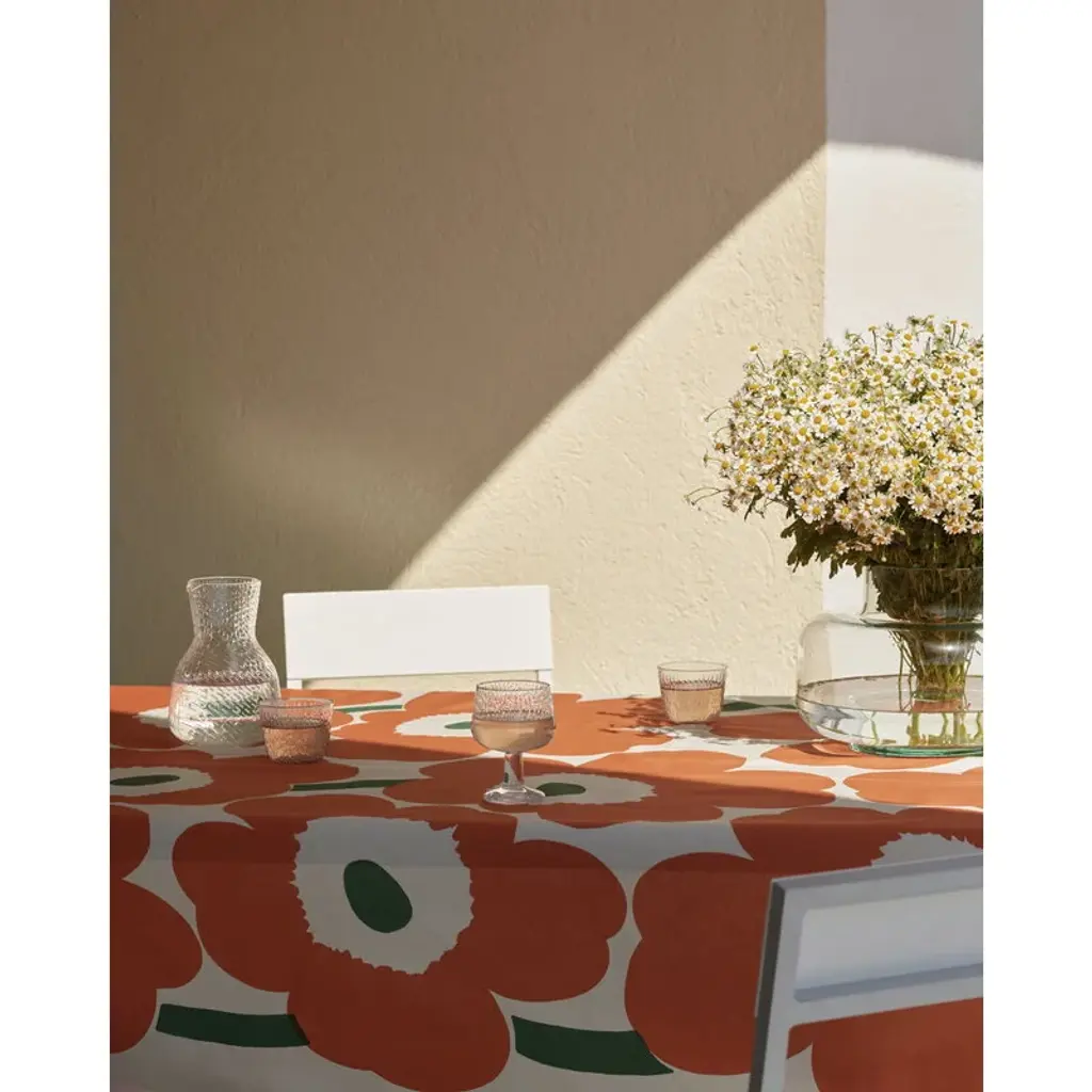 Marimekko’s Syksy goblet is adorned with a beautifully designed relief surface by Matti Klenell, featuring subtle lines that evoke the various shapes of rustling autumn rain. Named after the Finnish word for autumn, the Syksy glassware continues Marimekko’s longstanding tradition of interpreting the moods of nature and weather phenomena. Crafted from mouth-blown glass, the glass series exhibits a delicately sketch-like texture that skillfully brings to life the refreshing feeling of rain. The footed glass of the Syksy range is equally well-suited as a wine glass as well as for serving water, soft drinks or cocktails.