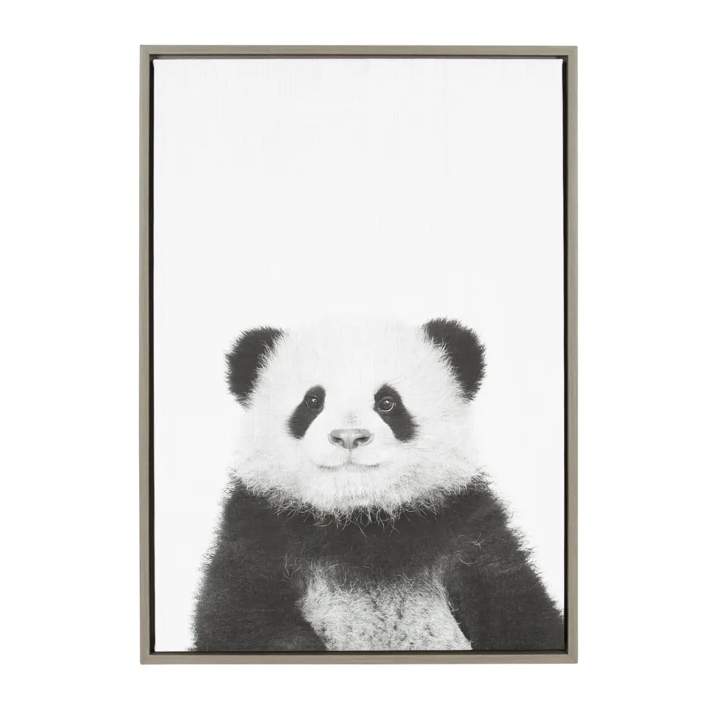 Win over guests with this 'Sylvie Panda' framed canvas wall art by Simon Te Tai. Black-and-white rendering makes the panda's true-to-life colors stand out even more than usual while lending the piece an air of drama. With a wood-grain frame, this piece comes ready to hang in your space.FRAMED CANVAS PRINT: A decorative black and white panda portrait is printed on framed gallery wrapped canvas.EFFORTLESS HANGING: The metal sawtooth hangers come attached on the inset MDF back for easy wall display.STATEMENT SIZE: The frame is made of a lightweight material. The framed canvas display dimensions are 33 inches high by 23 inches across by 1.6 inches deep.FRAMED IN WISCONSIN: Gallery wrapped canvas is printed and framed in Waunakee, Wisconsin, USA of domestic and imported parts.FRAMED IN WISCONSIN: Gallery wrapped canvas is printed and framed in Waunakee, Wisconsin, USA of domestic and imported parts.