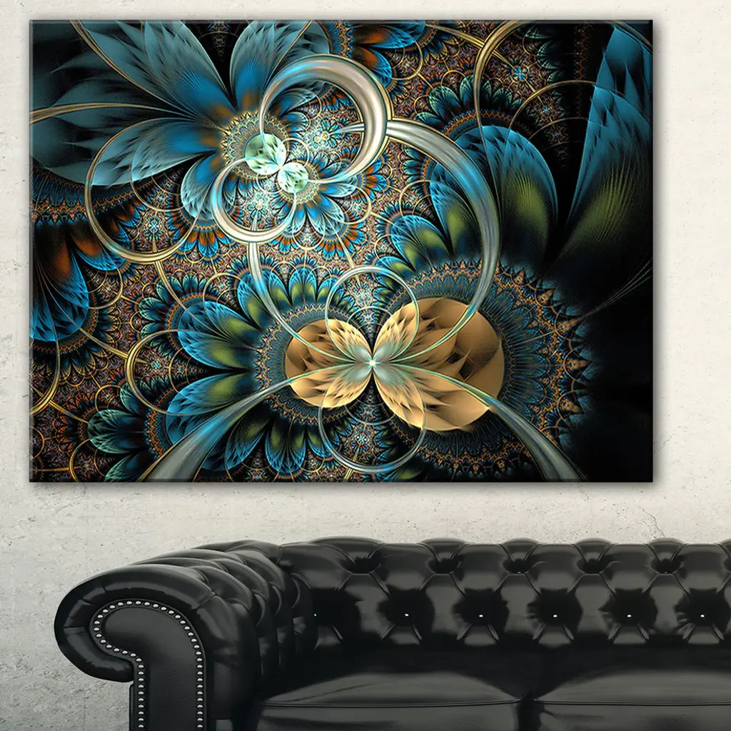 The Symmetrical Blue Gold Fractal Flower canvas art print is sure to make an impression on anyone who sees it. This artwork is gallery wrapped around a 1-inch solid wood frame and arrives carefully packaged and entirely ready to hang on the wall. Design Art only uses the highest resolution and pigments to ensure a crisp colorful print that is never faded or pixelated. This artwork is sure to be a conversation starter in any home or office.