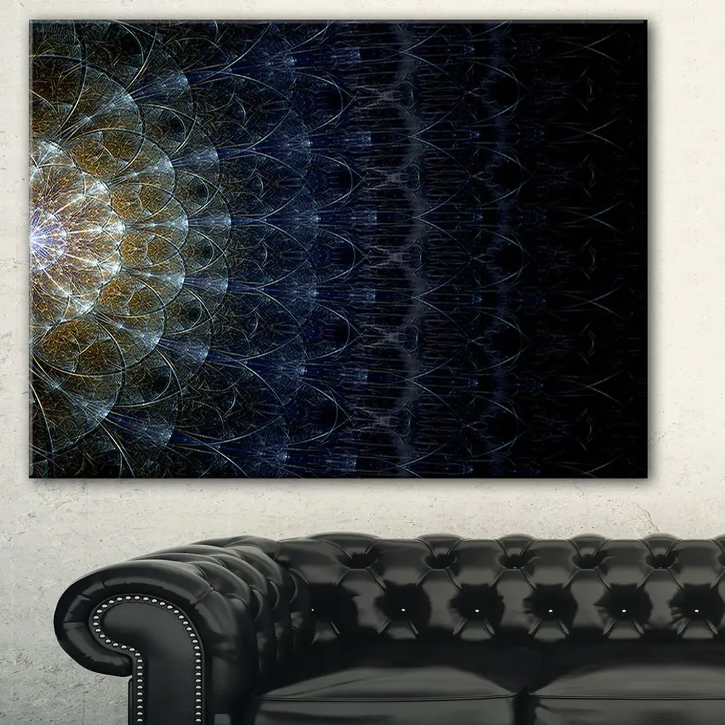 The Symmetrical Blue Silver Fractal Flower canvas art print is sure to make an impression on anyone who sees it. This artwork is gallery wrapped around a 1-inch solid wood frame and arrives carefully packaged and entirely ready to hang on the wall. Design Art only uses the highest resolution and pigments to ensure a crisp colorful print that is never faded or pixelated. This artwork is sure to be a conversation starter in any home or office.