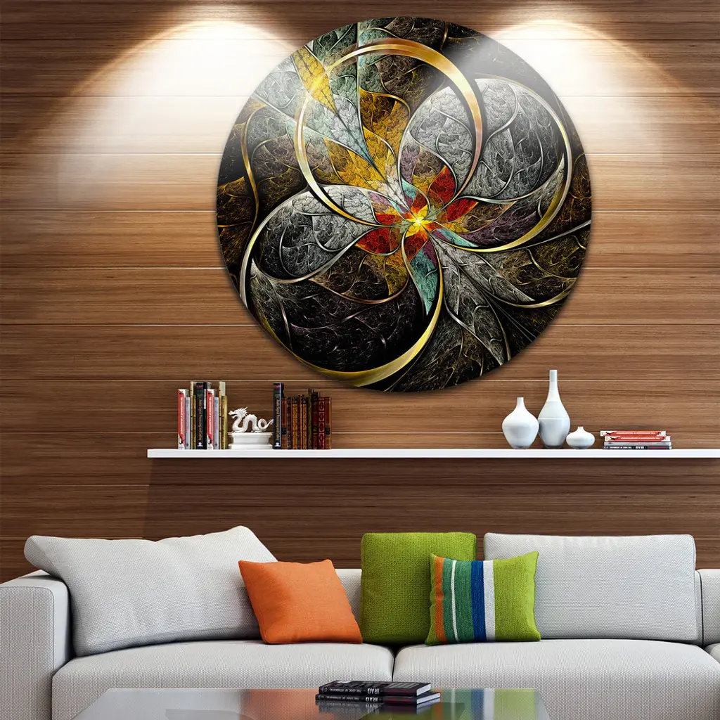 Bring Contemporary Abstraction to your home with this large Circle Metal wall art. This Symmetrical Brown Fractal Flowers Metal Artwork makes it the focal point of any room or office. - White Gloss Coating ensures colors are extra vibrant with light reflection.- Aluminum grade Sheet Metal with 1 inch mounting frame on the back giving the illusion that the artwork is floating on the wall..- Mounting Brackets are included along with instructions.- High Quality Digital images are created directly into a glossy aluminum panel producing a stunning and captivating print into the glossy finish of the metal.- Water, Fire and Scratch resistant HD Aluminum panels.- Looks better than any photo paper and guaranteed to last at least 20 years- Easy to clean with a microfiber cloth. Colors are far superior to regular Canvas Art. - Easy to Hang