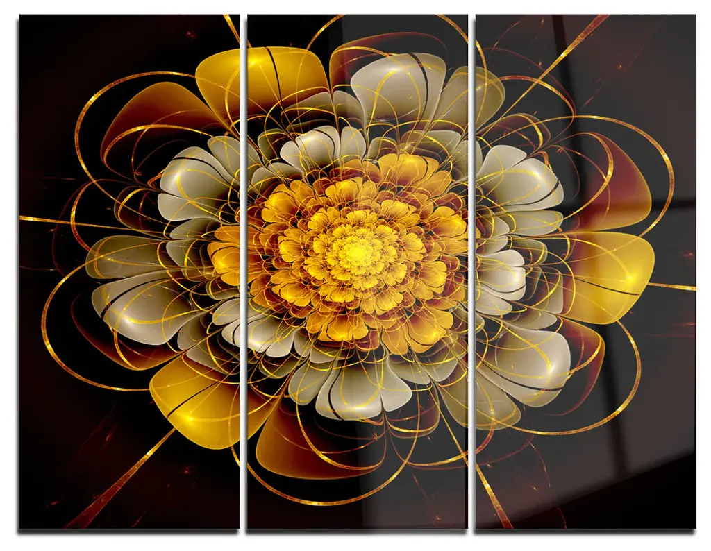 "Symmetrical Firework Pattern" Digital Metal Wall Art, 3 Panels, 36"x28"