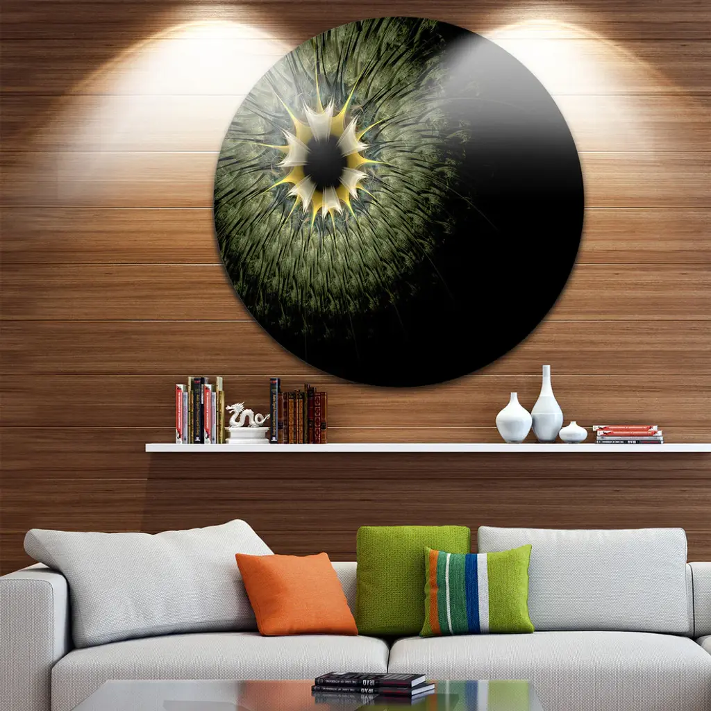 Bring Contemporary Abstraction to your home with this large Circle Metal wall art. This Symmetrical Fractal Flower in Light Green Metal Artwork makes it the focal point of any room or office. - White Gloss Coating ensures colors are extra vibrant with light reflection.- Aluminum grade Sheet Metal with 1 inch mounting frame on the back giving the illusion that the artwork is floating on the wall..- Mounting Brackets are included along with instructions.- High Quality Digital images are created directly into a glossy aluminum panel producing a stunning and captivating print into the glossy finish of the metal.- Water, Fire and Scratch resistant HD Aluminum panels.- Looks better than any photo paper and guaranteed to last at least 20 years- Easy to clean with a microfiber cloth. Colors are far superior to regular Canvas Art. - Easy to Hang