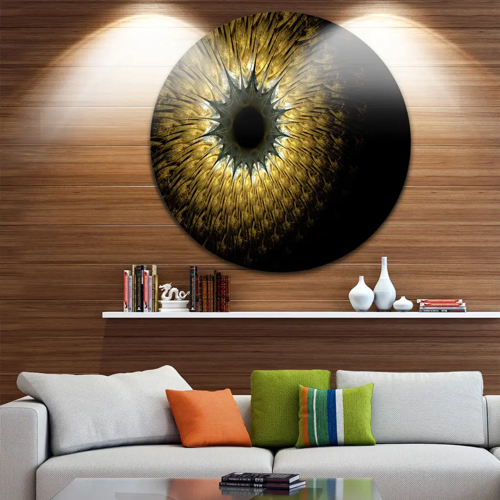 Bring Contemporary Abstraction to your home with this large Circle Metal wall art. This Symmetrical Gold Digital Fractal Flower Metal Artwork makes it the focal point of any room or office. - White Gloss Coating ensures colors are extra vibrant with light reflection.- Aluminum grade Sheet Metal with 1 inch mounting frame on the back giving the illusion that the artwork is floating on the wall..- Mounting Brackets are included along with instructions.- High Quality Digital images are created directly into a glossy aluminum panel producing a stunning and captivating print into the glossy finish of the metal.- Water, Fire and Scratch resistant HD Aluminum panels.- Looks better than any photo paper and guaranteed to last at least 20 years- Easy to clean with a microfiber cloth. Colors are far superior to regular Canvas Art. - Easy to Hang