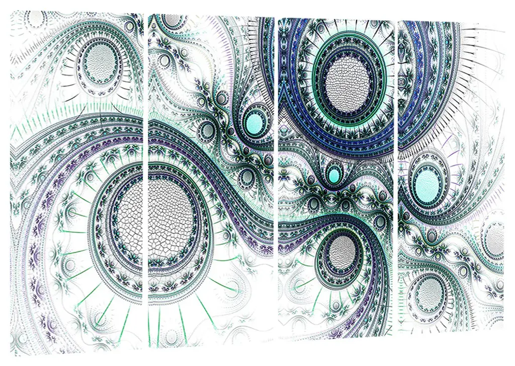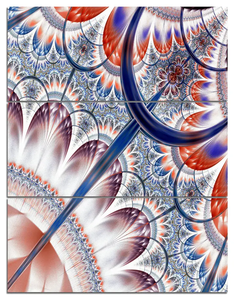 "Symmetrical Purple Fractal Flower" Digital Metal Wall Art, 3 Panels, 36"x28"