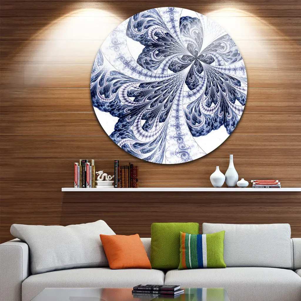 Bring Contemporary Abstraction to your home with this large Circle Metal wall art. This Symmetrical Tight Blue Fractal Flower Metal Artwork makes it the focal point of any room or office. - White Gloss Coating ensures colors are extra vibrant with light reflection.- Aluminum grade Sheet Metal with 1 inch mounting frame on the back giving the illusion that the artwork is floating on the wall..- Mounting Brackets are included along with instructions.- High Quality Digital images are created directly into a glossy aluminum panel producing a stunning and captivating print into the glossy finish of the metal.- Water, Fire and Scratch resistant HD Aluminum panels.- Looks better than any photo paper and guaranteed to last at least 20 years- Easy to clean with a microfiber cloth. Colors are far superior to regular Canvas Art. - Easy to Hang